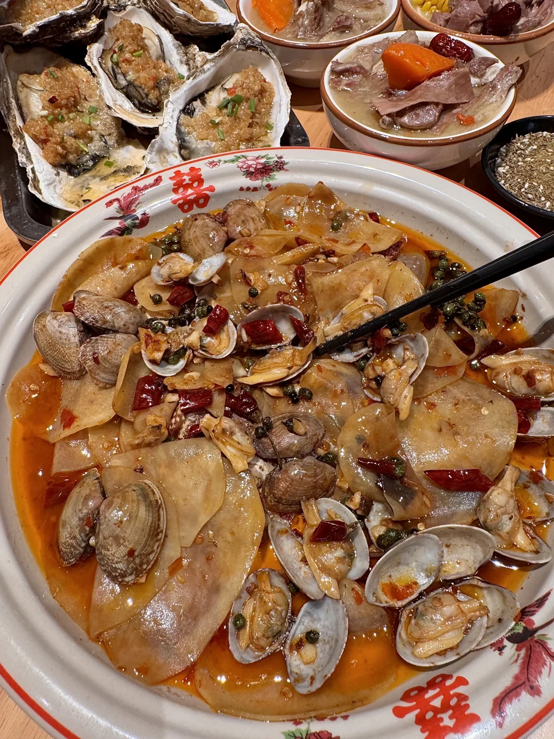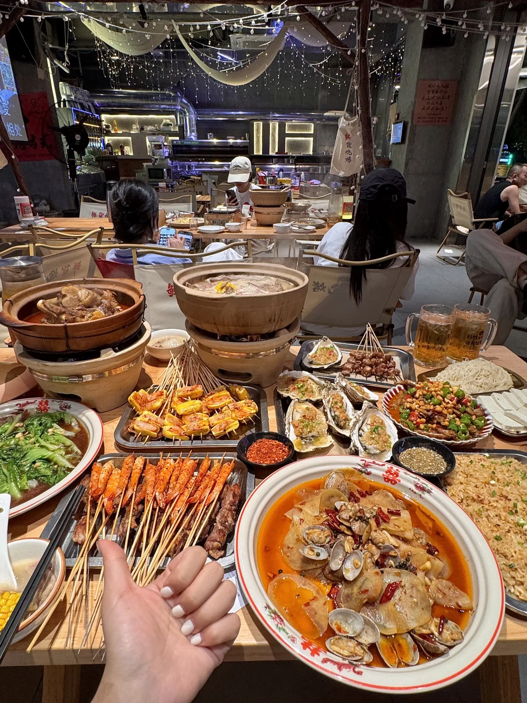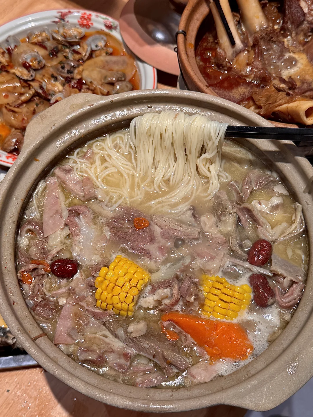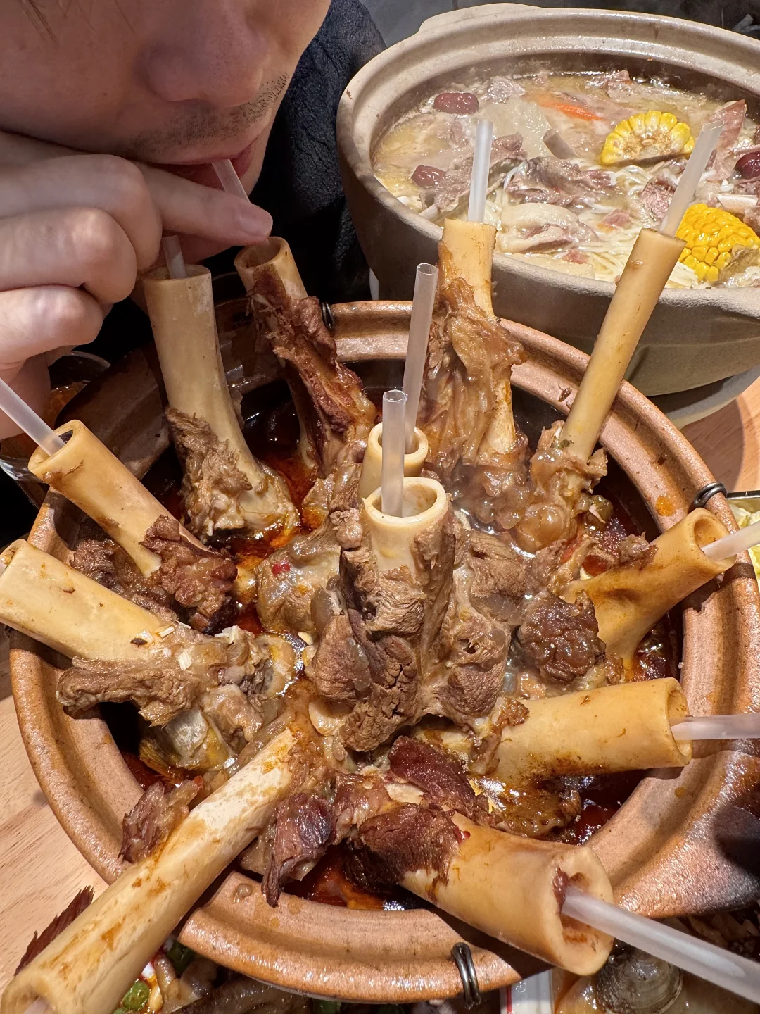 菠萝蜜虾滑!!清甜脆嫩,虾滑好鲜好弹牙!还有大油边、烤大虾……蘸上辣椒面和孜然粉,我好爱啊啊! 杭州能不能多开一点这样的小店!!很难在杭找到这样让我满意的羊肉煲了😭炭火炉子慢煨出来的羊汤、炖得软烂的羊肉…真的好鲜好嫩一点都不膻,降温太适合吃这一锅了!! 一定要煮一份面条进去,来一口羊汤瞬间从头暖到脚!羊排羊棒骨都juju鲜嫩,份量足够三个人吃,尊嘟一口惊艳! 人均也不贵,我们三个人才70出头!喜欢这口的姐妹真心可以去吃吃看!! 就在康康谷!叫(老莫羊肉炉)