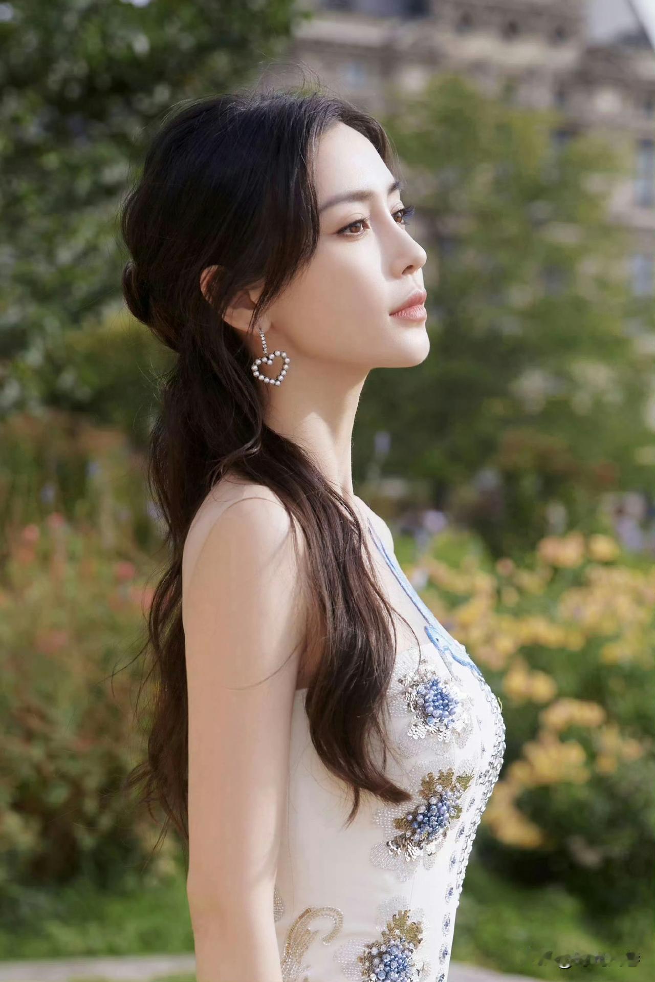 杨颖美照,在阳光明媚绿意盎然的草坪边,景美,人更美!杨颖