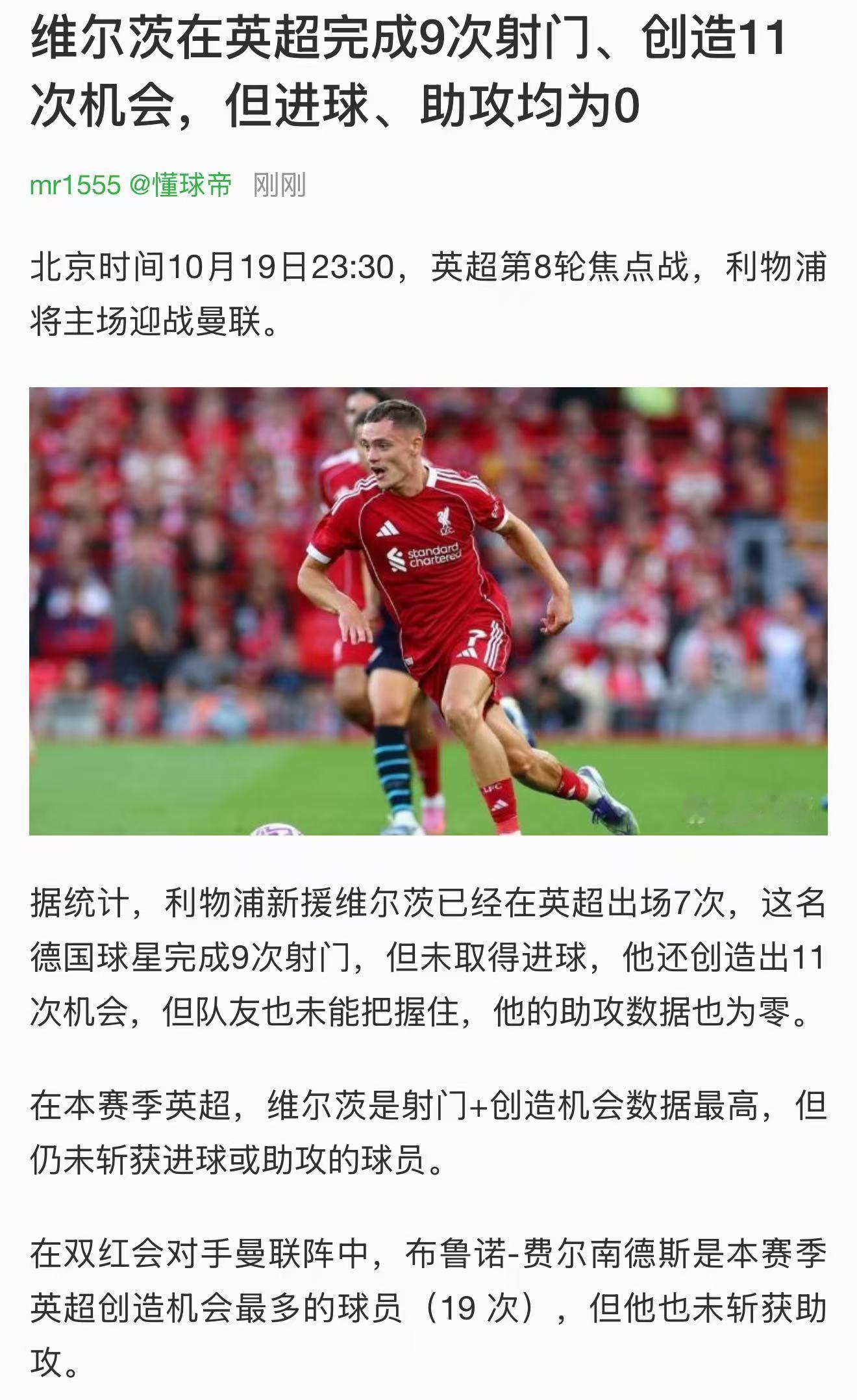 今晚的双红会如果不能成为维尔茨的救赎之战的话,那么斯洛特把他放到替补席就有理由了。