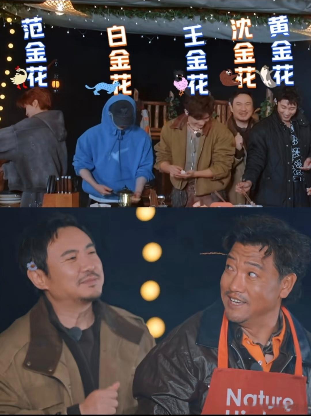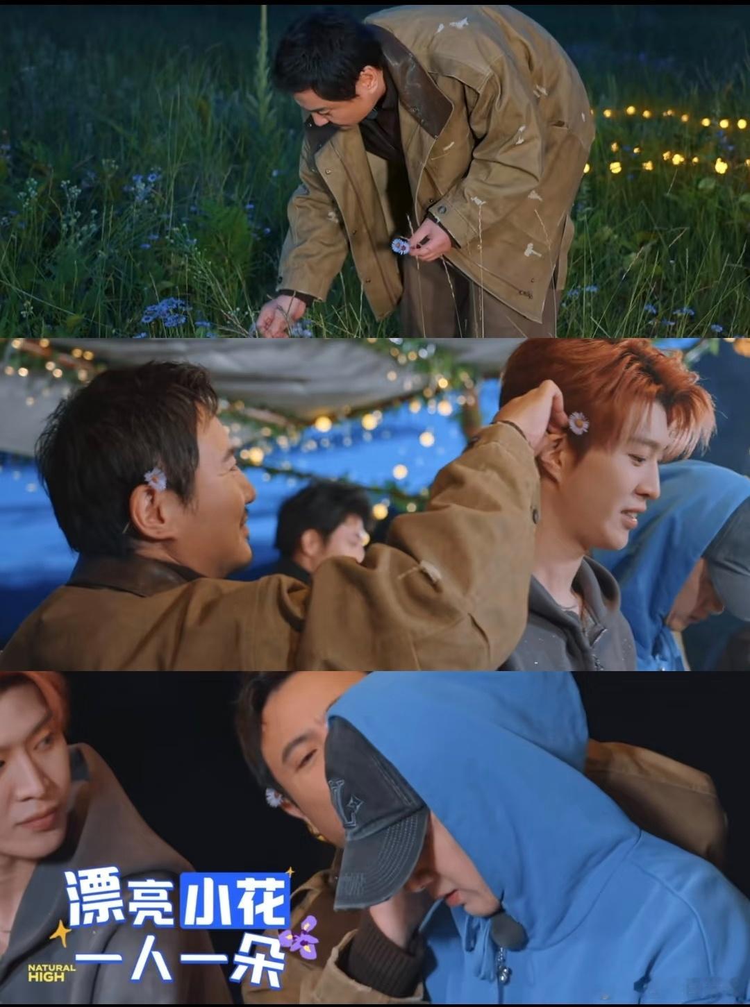 所有人都忙忙叨叨地在厨房里面,腾哥就在旁边摘花给大家戴上😋,五朵金花排排站太好笑了哈哈哈