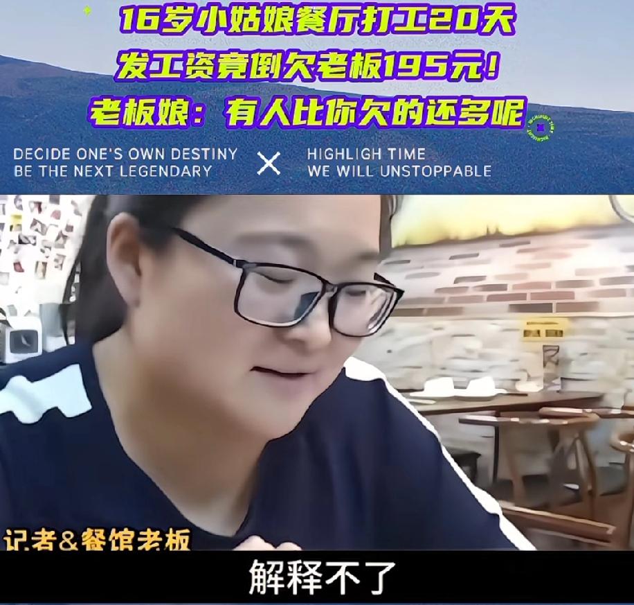 16岁小姑娘餐馆打工20天,一分钱没挣,反倒欠老板195元,小姑娘崩溃了。 小姑娘还在上学,利用假期时间打工挣点钱交学费给家里减轻负担,没想到辛勤工作快一个月了,一分钱没有还要给老板娘195元。 小姑娘求助记者,老板娘一脸无所谓,前一个服务员比你欠的还多。 记者让老板娘写了个明细,一看不仅工作服自己买,围裙钥匙都得自己花钱,还有各种扣款,总结下来就是白忙活一分不挣还倒欠。 这样的饭店不明摆着欺负打工人吗,谁敢去她家打工啊!