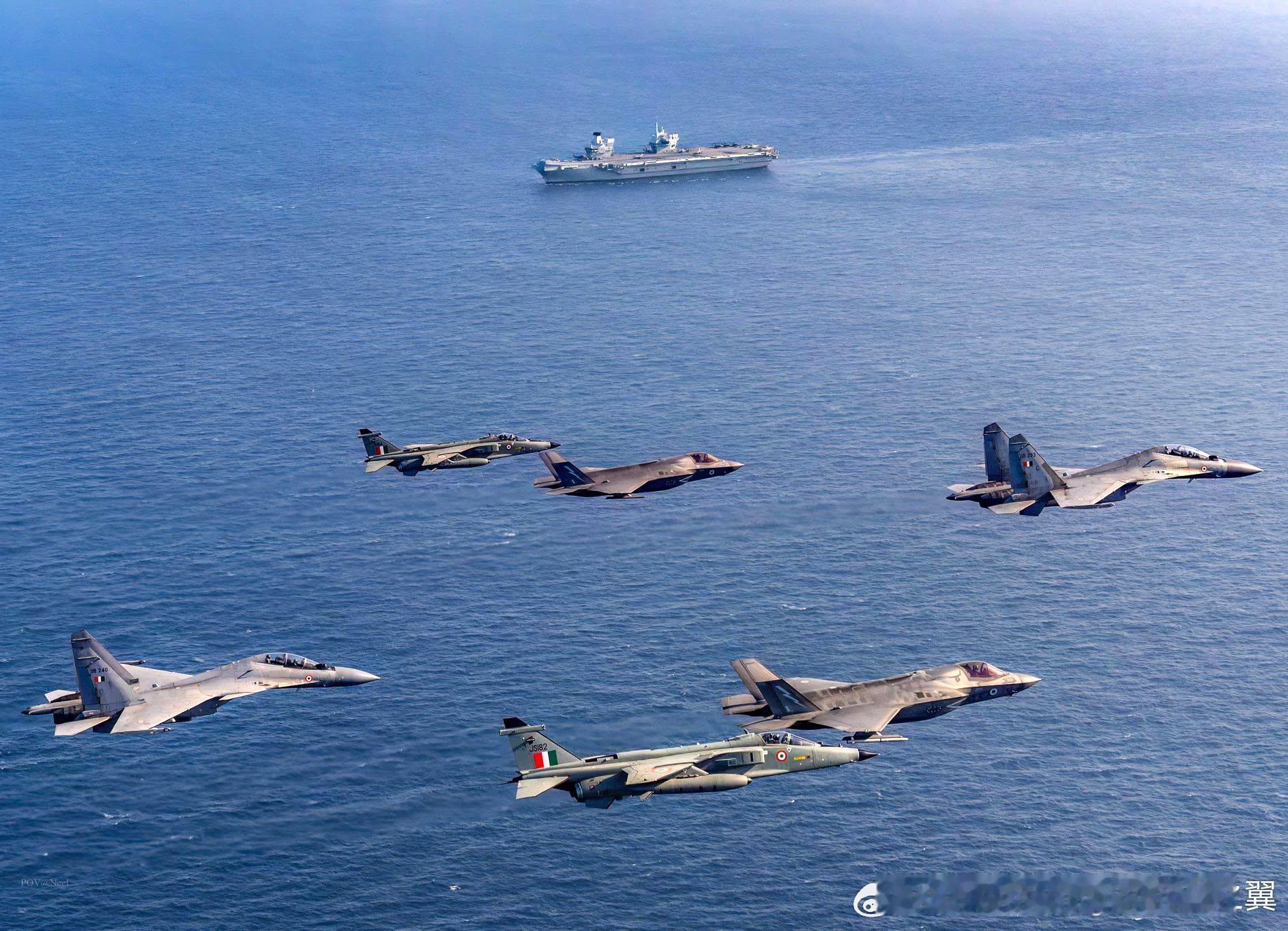 KONKAN-25军演中的印度苏-30MKI、美洲虎和英国F-35B合影