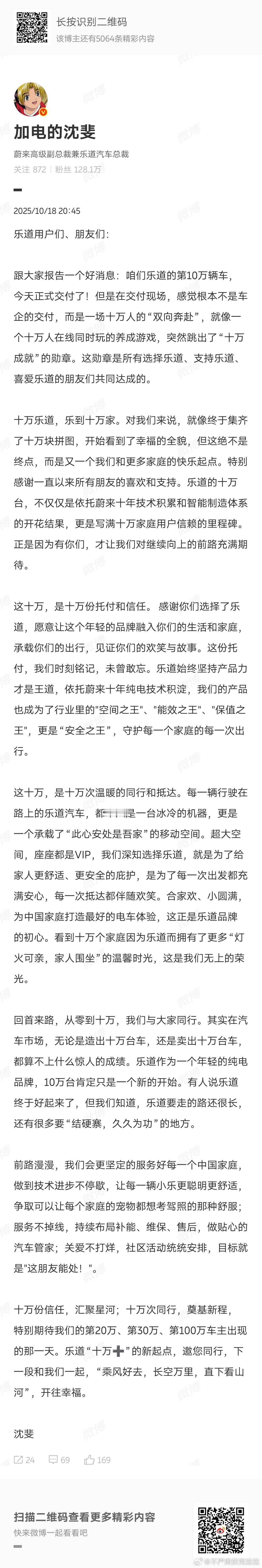 乐道十万台交付,昨天应该写的,昨天到家太迟了偷懒了,今天写了。