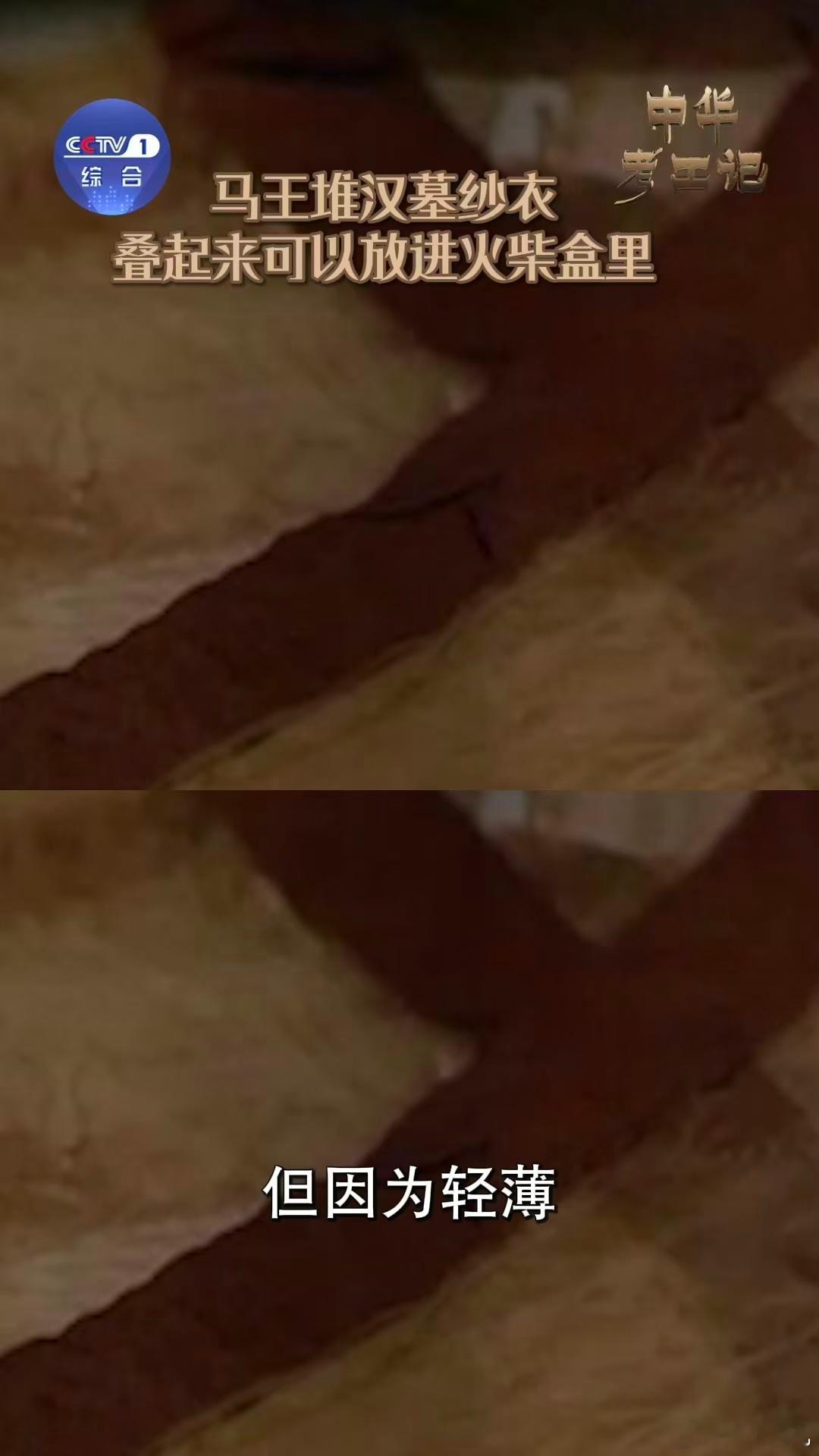 马王堆汉墓纱衣叠起来可以放进火柴盒里这件汉代纱衣折三层还能透字 素纱襌衣叠起来能放进火柴盒,光这点就够惊艳!更别提它薄到透字、蚕丝极细,1972年出土至今完好,古工艺让人叹服。中华考工记
