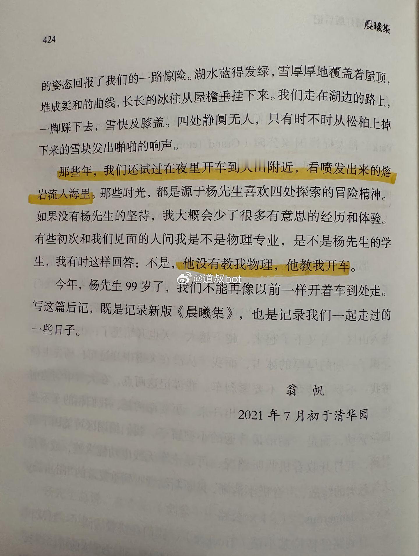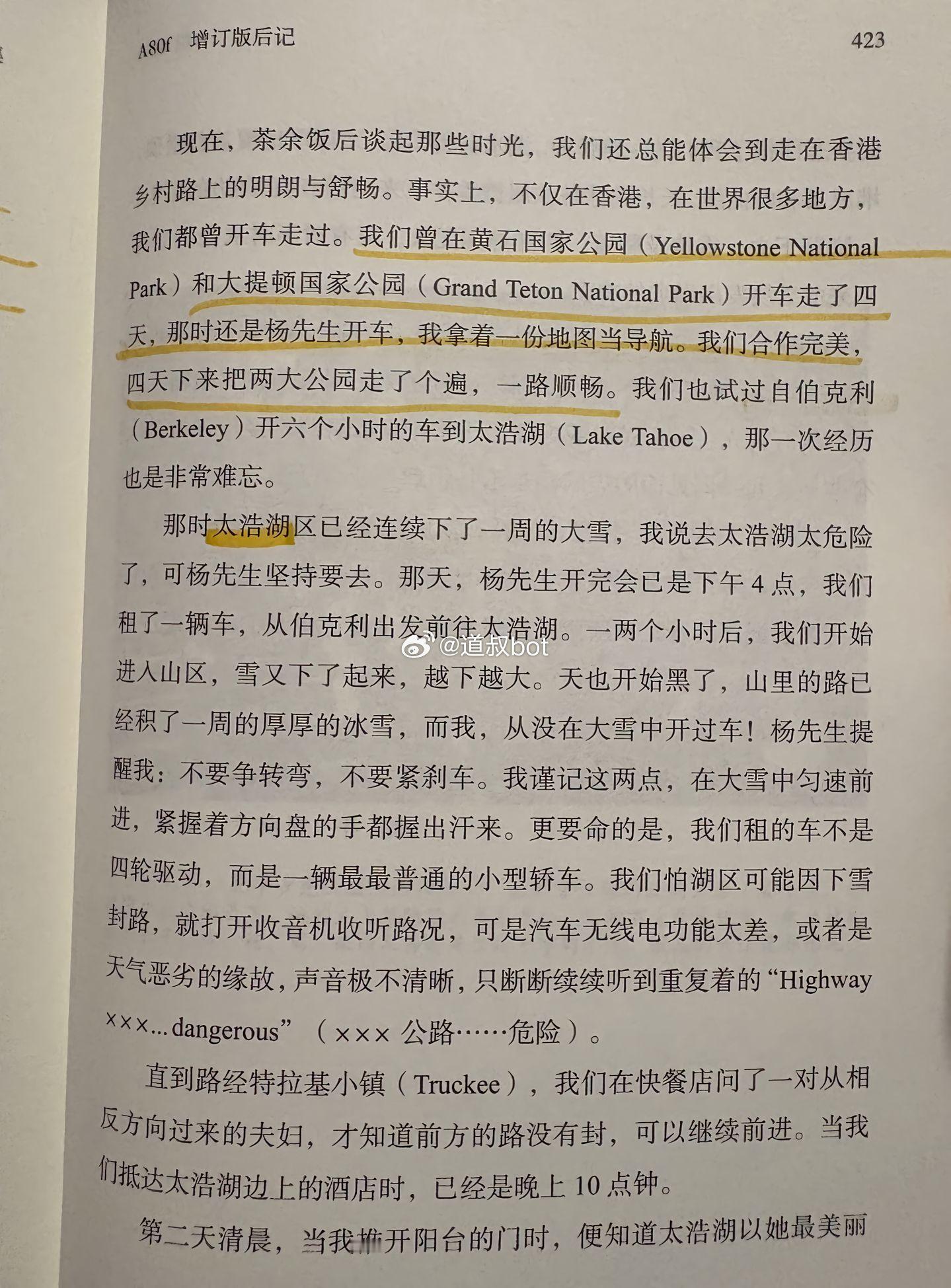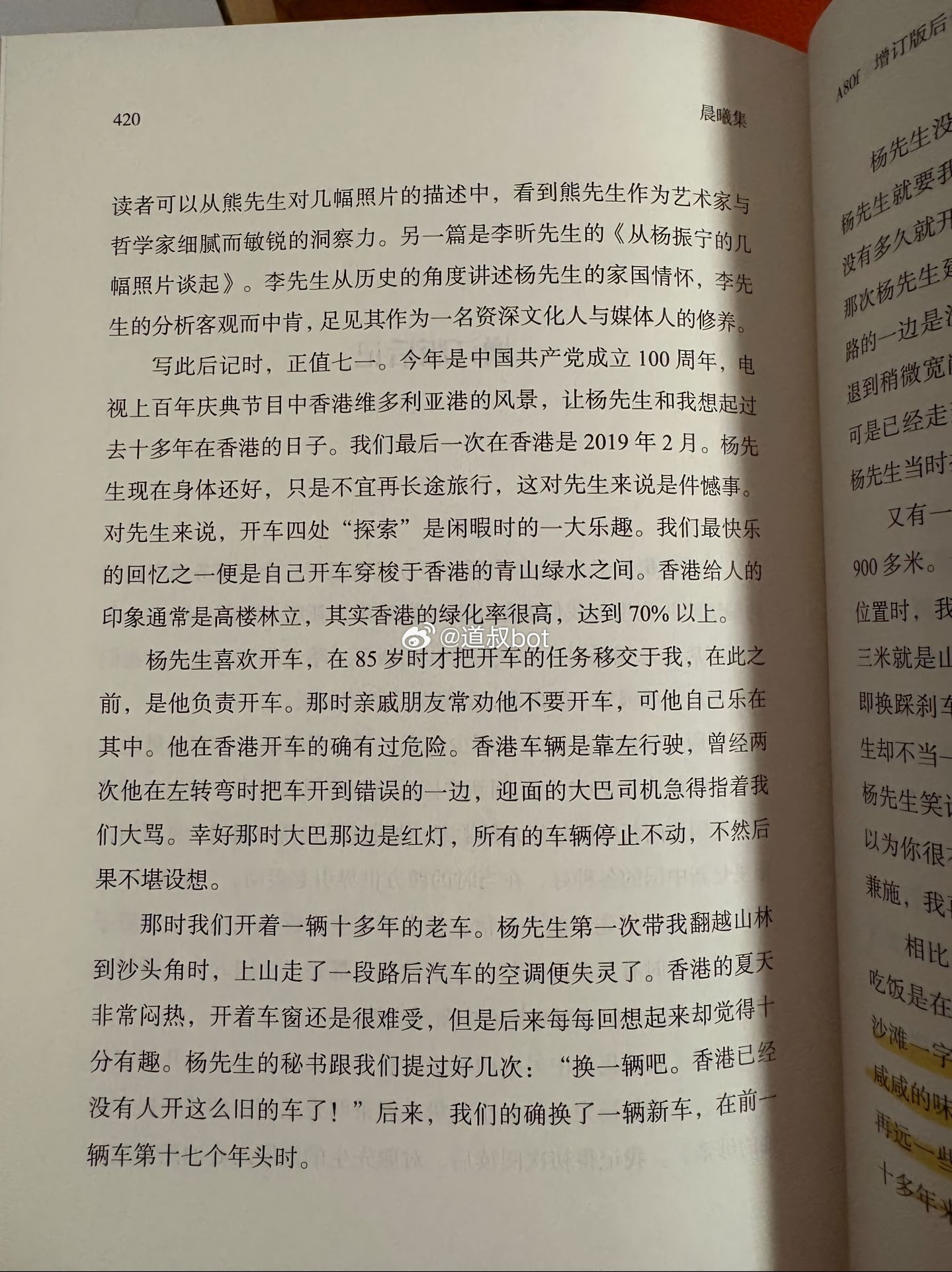 回忆与杨振宁先生在中国香港及美国的自驾旅行的经历,十分真挚动人。28岁的她选择82岁的他,一定是超脱了世俗意义的更高层次的灵魂契合。