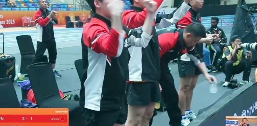 王楚钦对阵张本智和那场球,全场的焦点都在他俩身上,但我的眼睛却离不开一个人。 向鹏! 那个喊了整整25局,站起坐下几百次的“气氛组组长”。 林诗栋和向鹏在场下喊得那叫一个卖力,嗓子都快冒烟了。林诗栋好歹还上场打了一轮,能歇歇嗓子,向鹏可是从头到尾,把自己的全部力气都用在了呐喊上,简直就是一台永不疲倦的加油机器。 那架势,真就像自家大哥在外面跟人“干架”,两个弟弟在旁边擂鼓助威,生怕气势上输了半分。他们喊的不仅仅是加油,更是一种信念,必须把张本智和的气焰给压下去,必须让场上的“头哥”感受到背后有兄弟撑着。 这种精神力量,是任何技术统计里都看不到的,却是国乒最硬的底牌。它告诉对手,你面对的从来不是一个人,而是一支团结到骨子里的队伍。 所以王楚钦赢了,赢得酣畅淋漓。 冠军奖杯,王楚钦举着,但功劳簿上,必须给向鹏记上浓重的一笔。