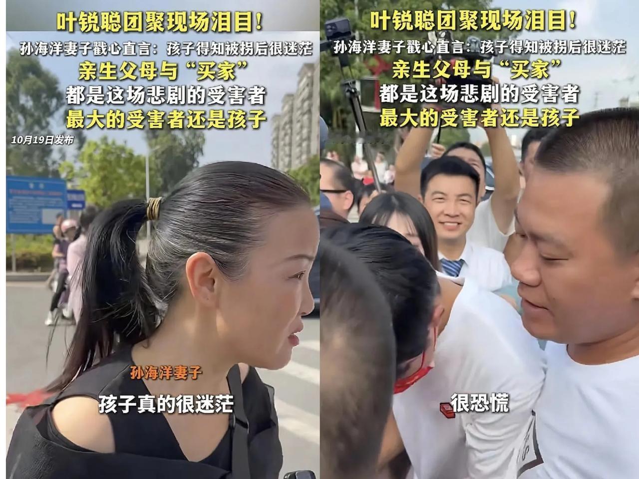 特别佩服孙海洋夫妇的智慧与共情[赞] 孙海洋妻子在叶锐聪团聚现场说出了这段戳心又真实的感受。她说,她知道孩子会迷茫恐慌,毕竟不知自己被拐,突然多对父母,搁谁身上都懵! 就像叶锐聪自己说的“感觉莫名其妙”,多年和养父母的感情难割舍,融入亲生父母又一片空白,孩子太可怜! 孙妈妈说这话时都快哭了,这想必也是她的心声! 整个事情,所有人都是受害者,唯独孩子是最大的受害者! 孙妈妈说这段话时都快落泪了,一路走来,这段话应该也是她内心的独白吧! 这事儿,她有绝对的发言权[赞] 大家有啥想法,都来说说呗。