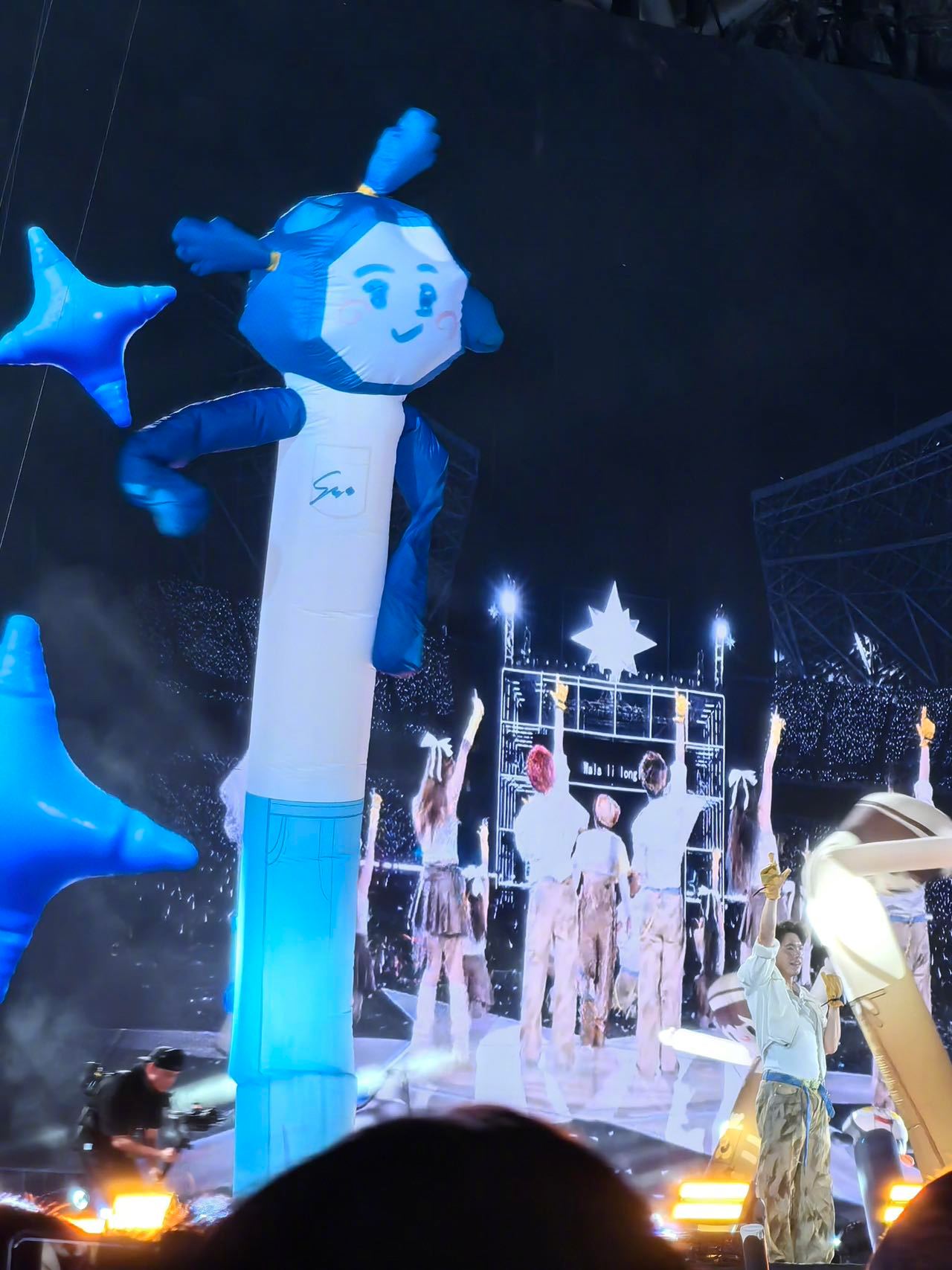 周深歌迷拿到了令人心动的offer 周深福州演唱会现场,他画的三马尾六边形米姐造型气球人加入战队,生米从观众席上舞台成为气球人战队员工,和周可可周嫑嫑一起给周深伴舞!
