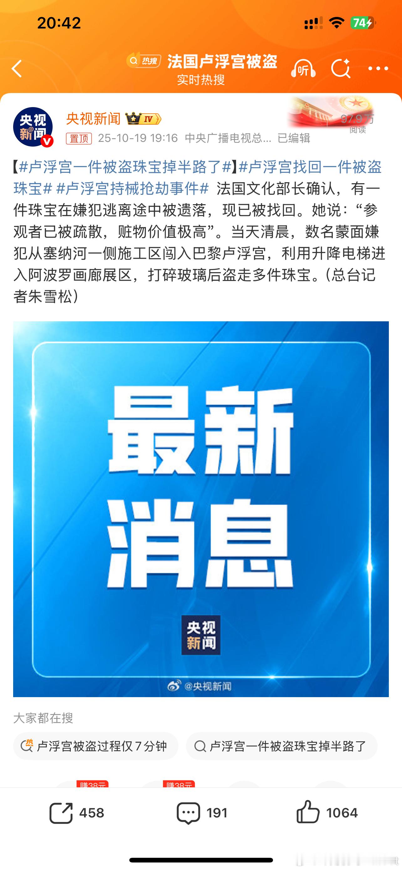 卢浮宫找回一件被盗珠宝