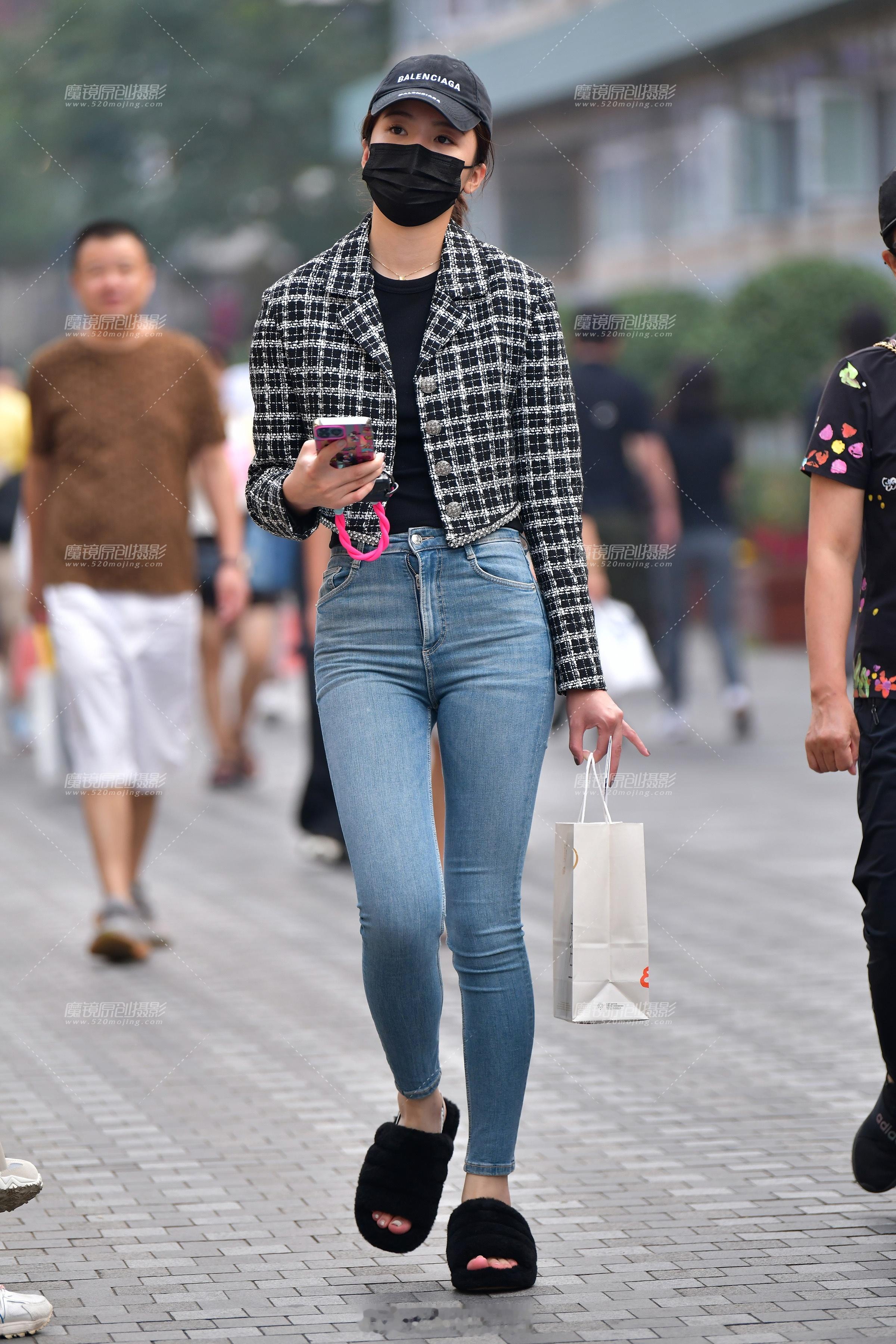 紧身点的牛仔裤,能显高!今日穿搭(ootd)