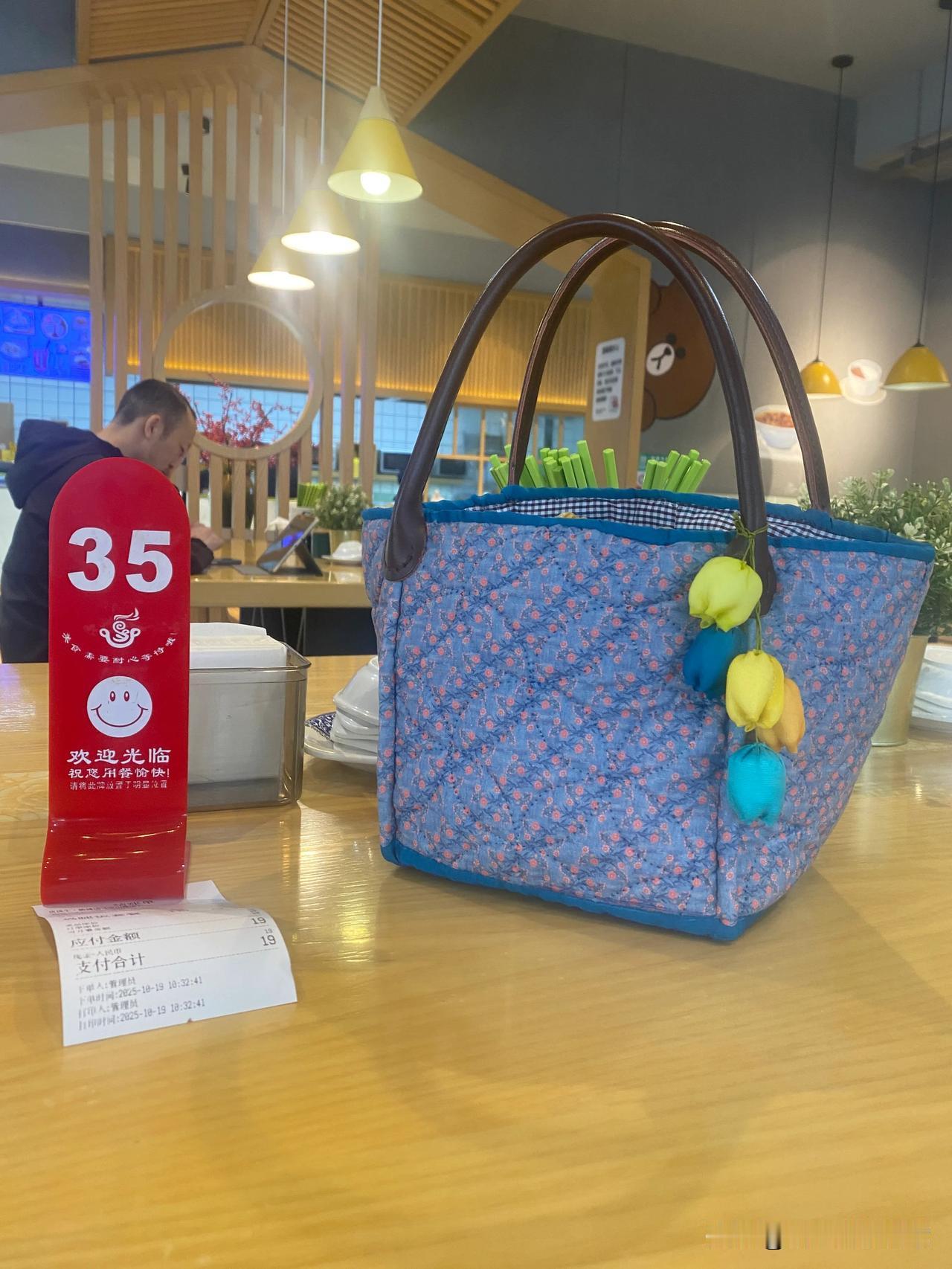 朋友定制的包包今天完工,背着它出去吃饭,感觉挺赞👍哦!