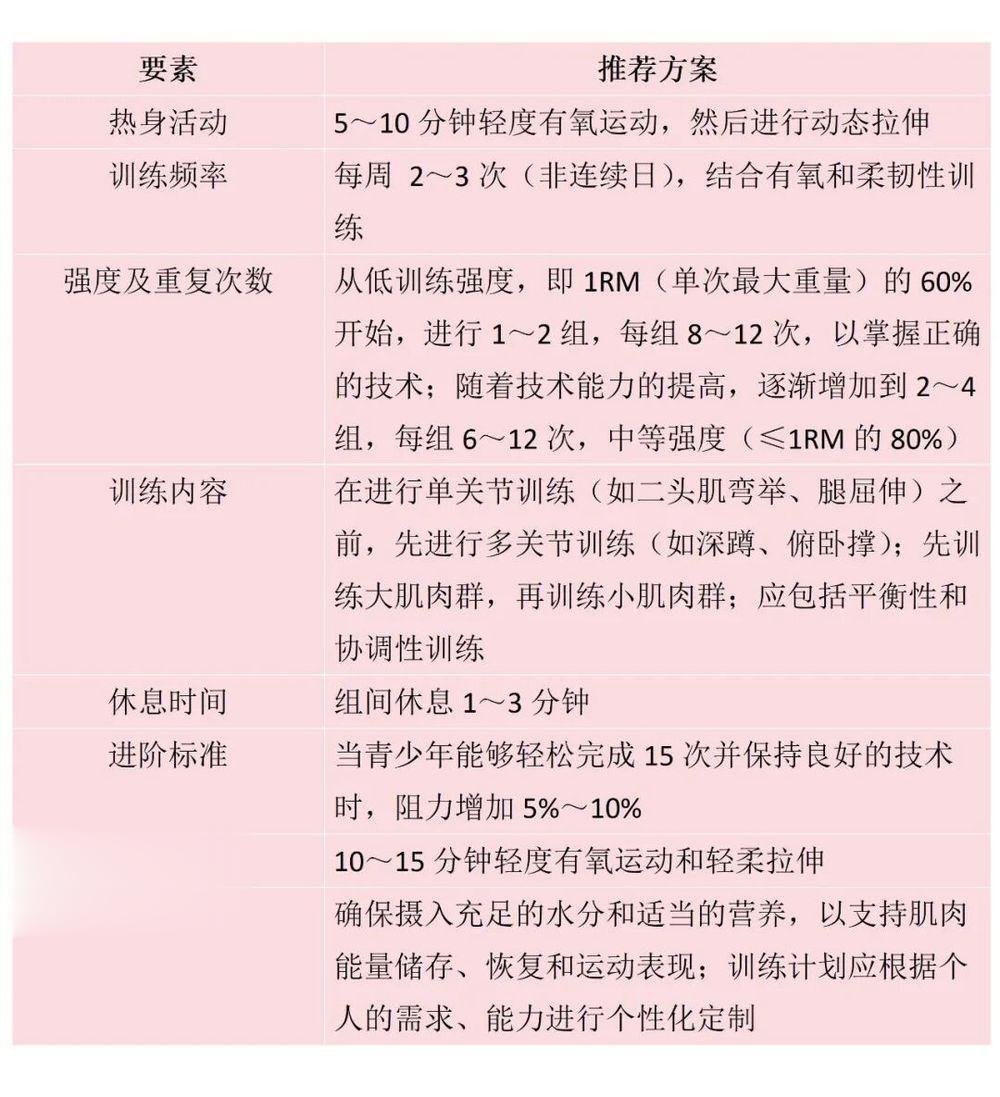 青少年的肌肉力量训练应遵循以下原则。