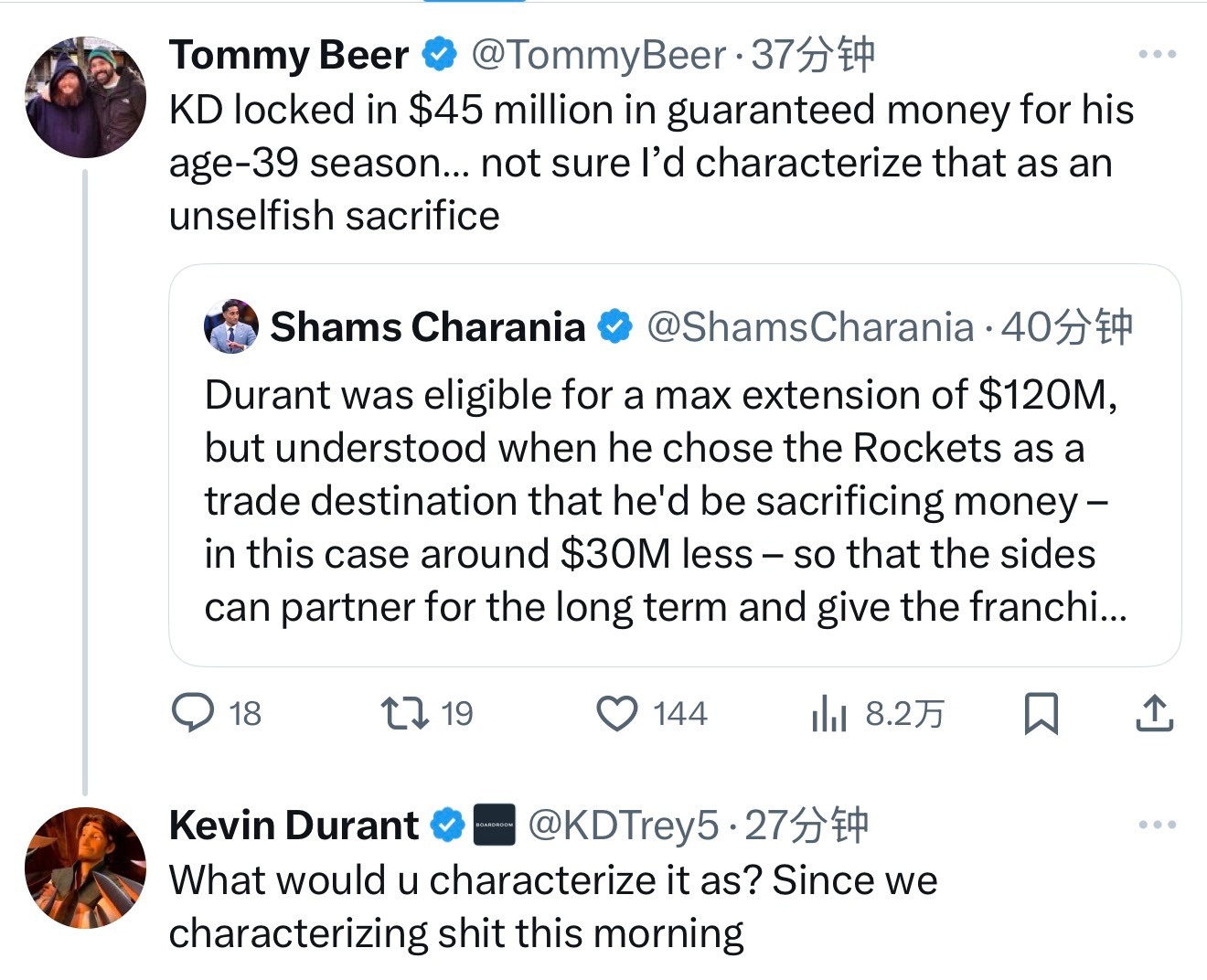 杜兰特4500万年均薪,伊森稳了!一年后,火箭全队薪资详情:1.杜兰特:45 【3评论】【14点赞】 杜兰特 火箭 多里安·芬尼-史密斯 小贾巴里·史密斯 国际当红篮球明星 体育密探 2025-10-19