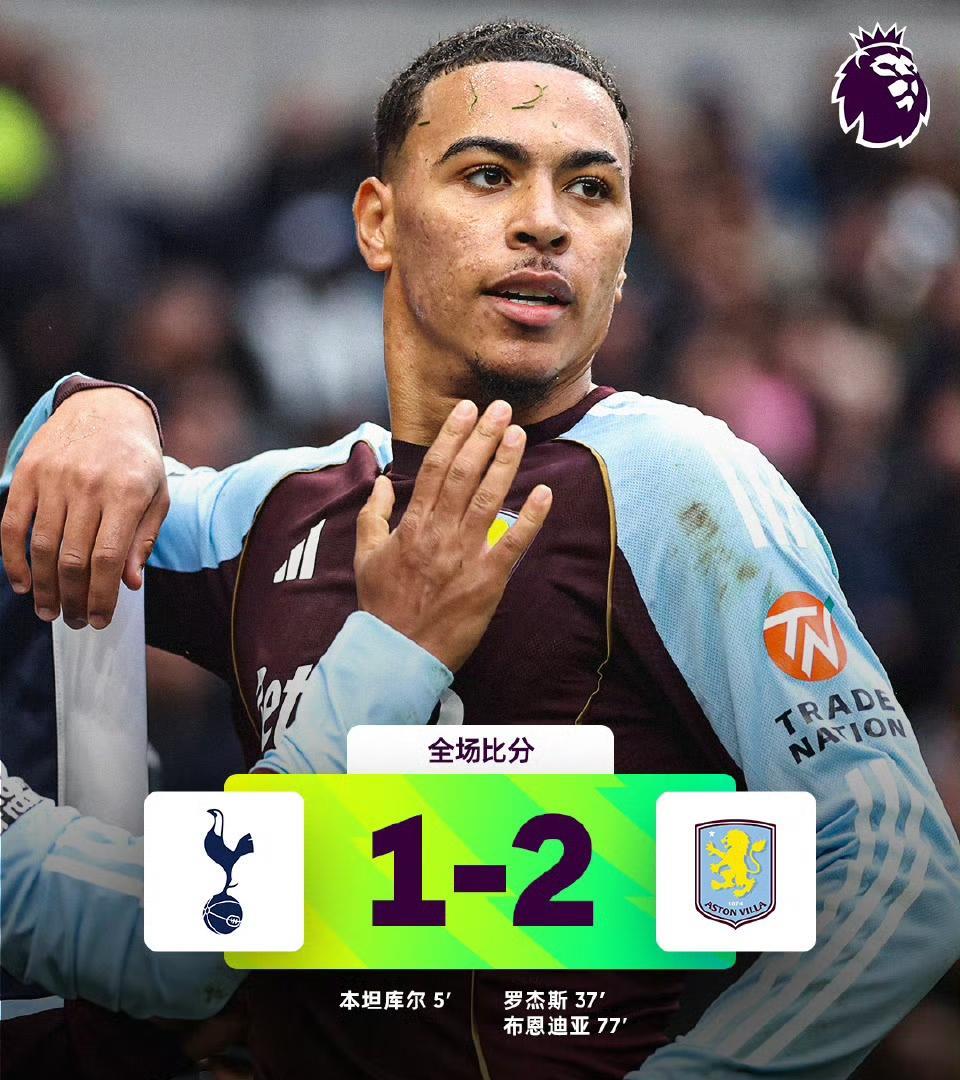全场战报|热刺 1-2 阿斯顿维拉