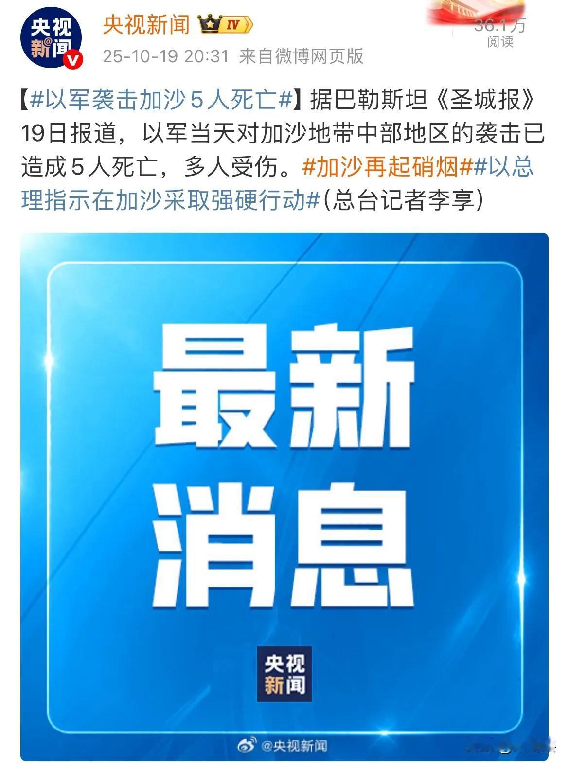【言而无信,以色列继续在加沙地带开展军事行动】 综合媒体消息,以色列国防军近日再次对加沙地带进行了空袭,袭击至少造成5名巴勒斯坦人死亡。 此前,伊朗称以色列已多次违反与哈马斯武装达成的停火协议,在哈马斯武装释放人质后仍旧对巴勒斯坦流离失所人员进行袭击。 与此同时,以色列则谴责哈马斯武装多次在以军控制区发动了袭击,以军的行动是对哈马斯武装袭击以军所作出的回应。