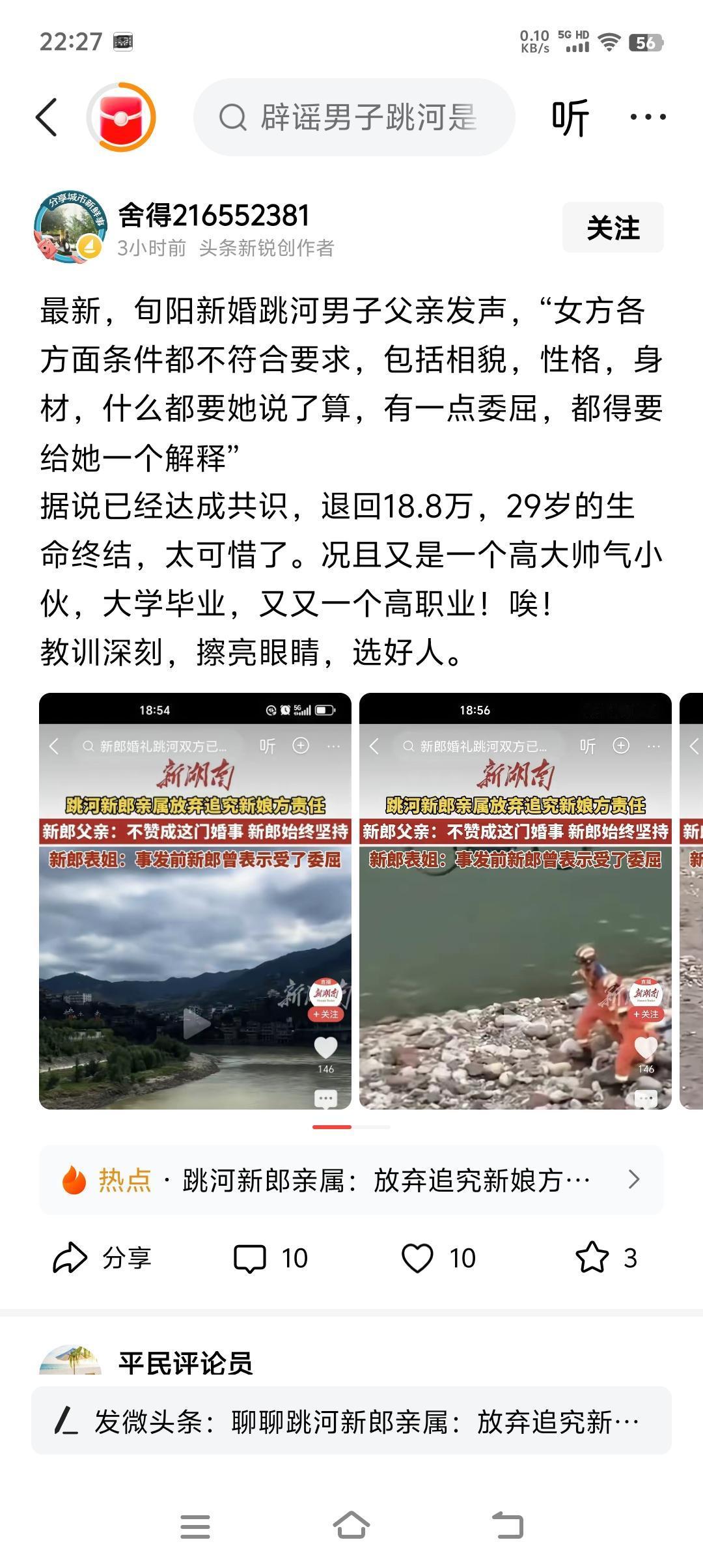 我有一点不理解!作为这个男方父亲,为什么一定要人家女孩子委屈呢?一个女孩子受不了委屈,难道是一个什么十恶不赦的事情吗?新郎跳河