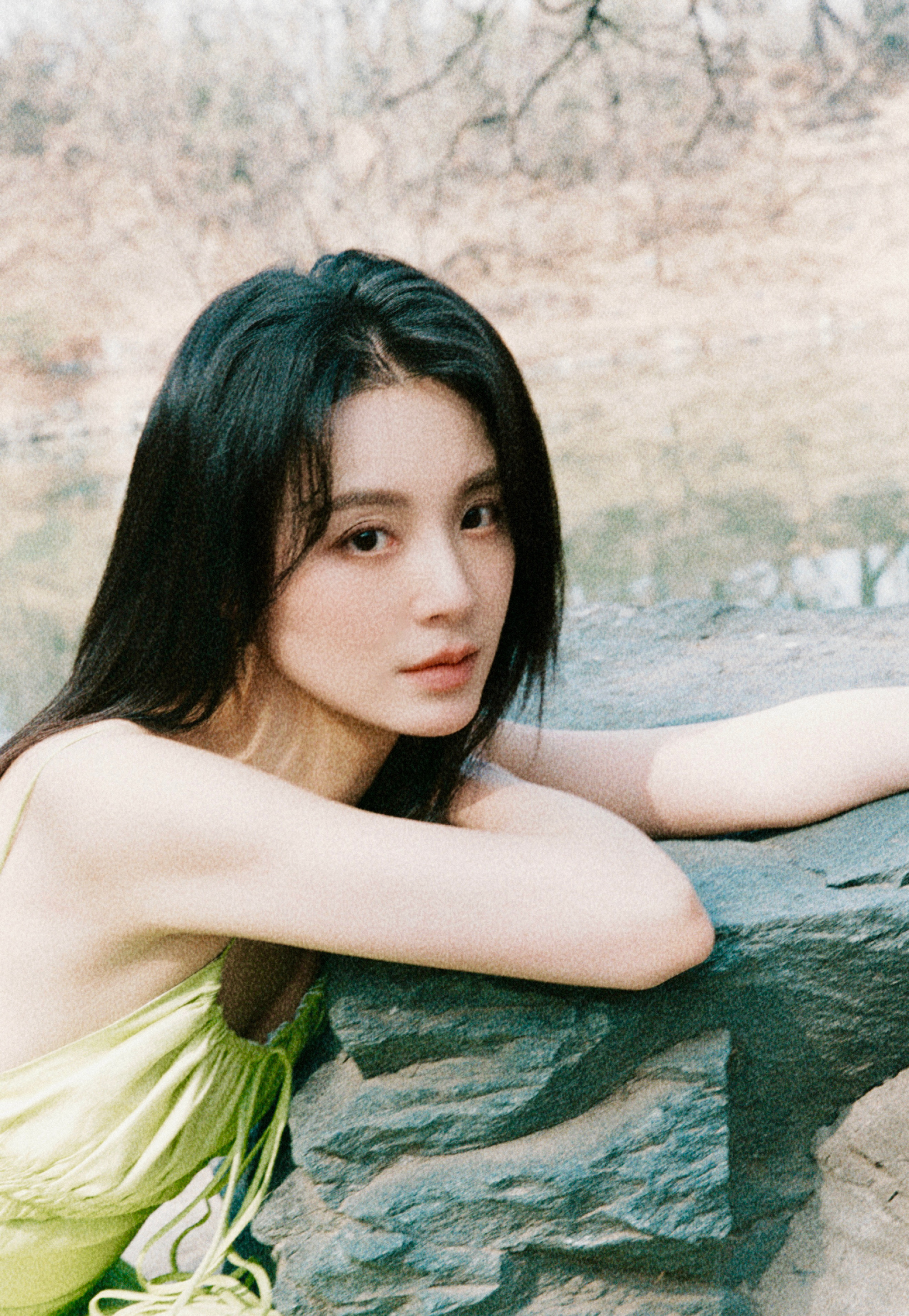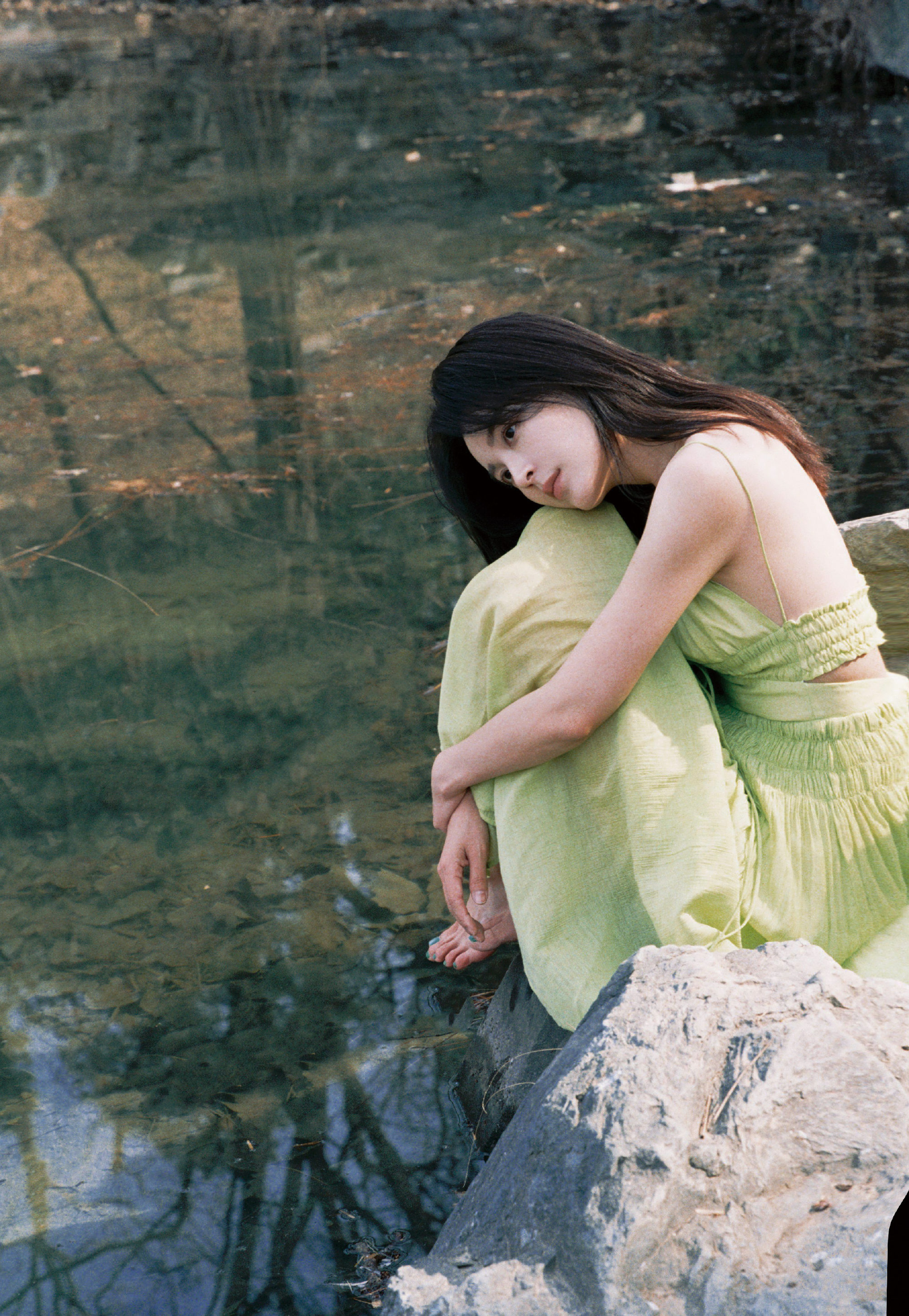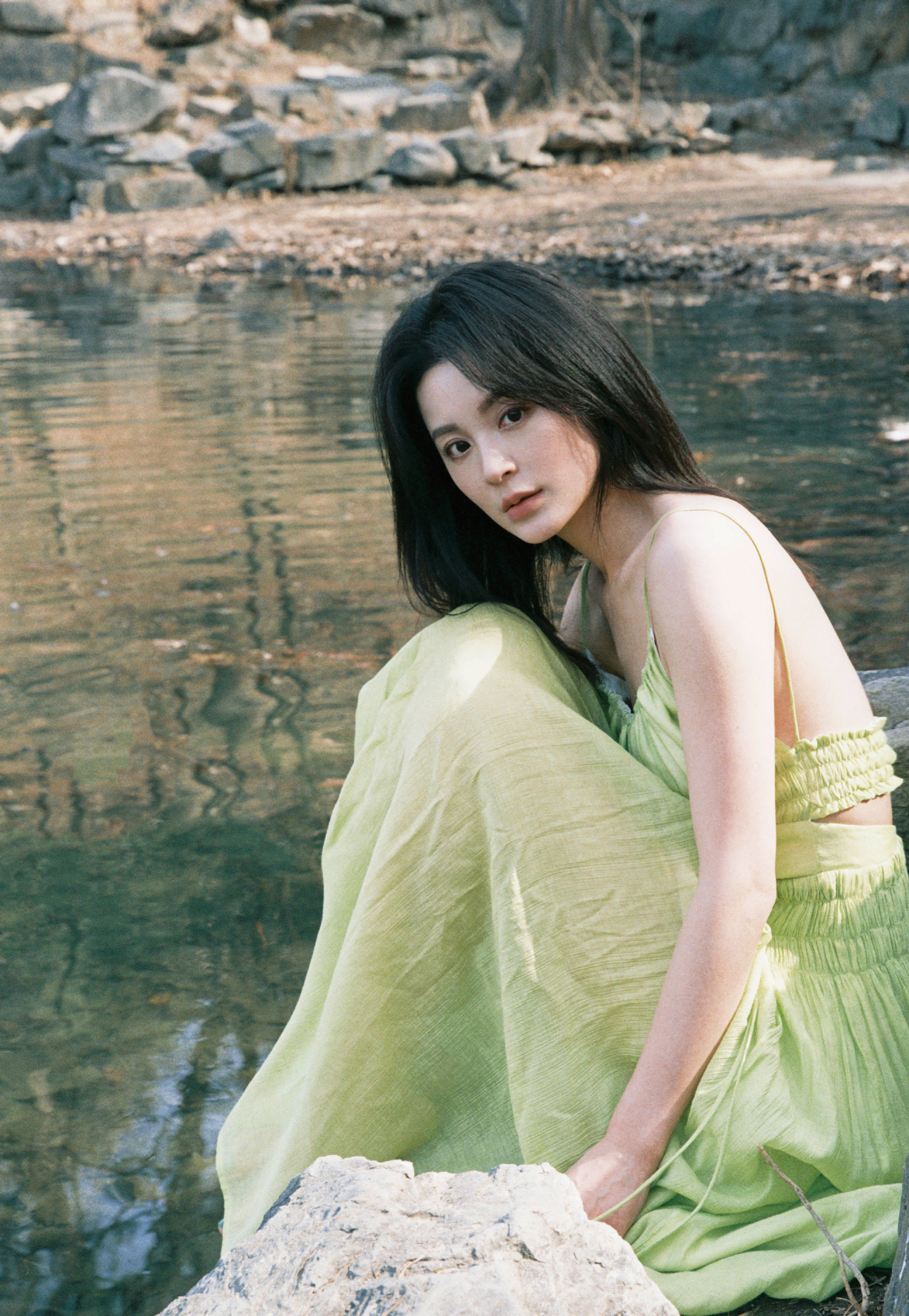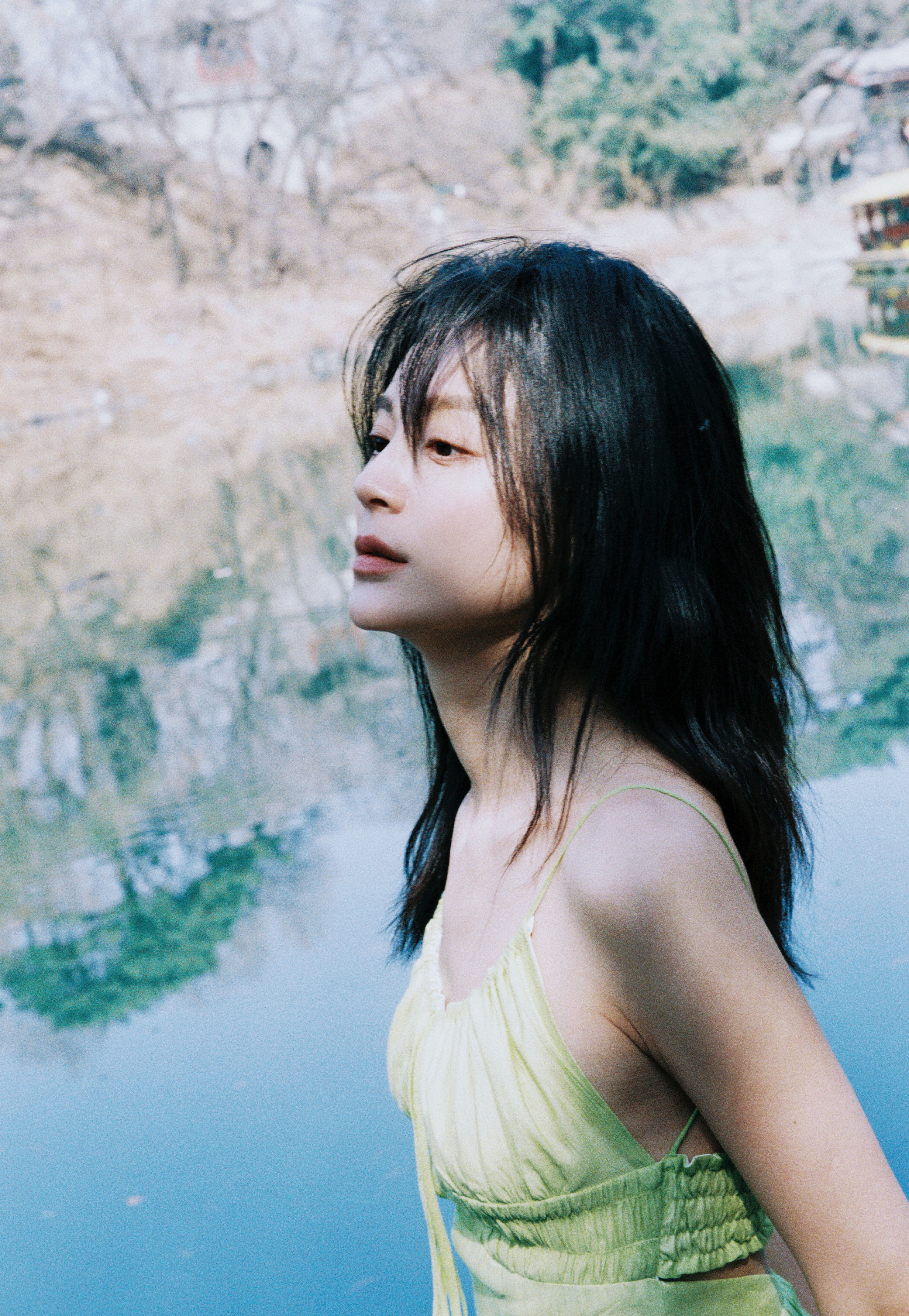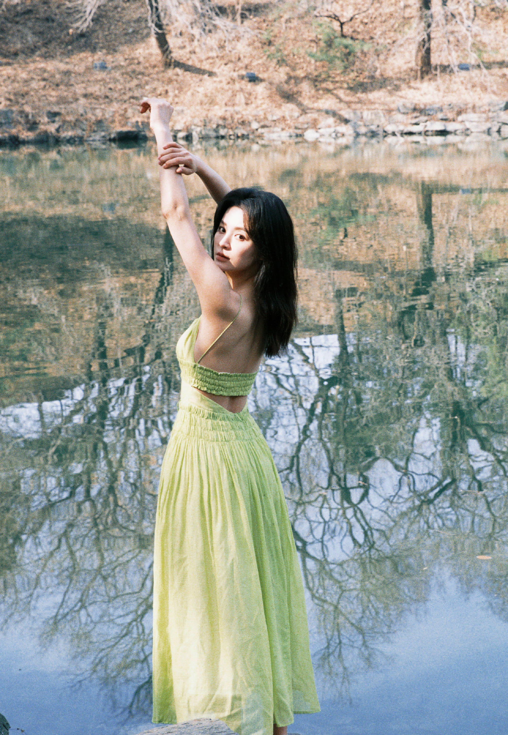 毛林林秋日氛围大赏,绿意纱裙,绿植岸边,意境满满