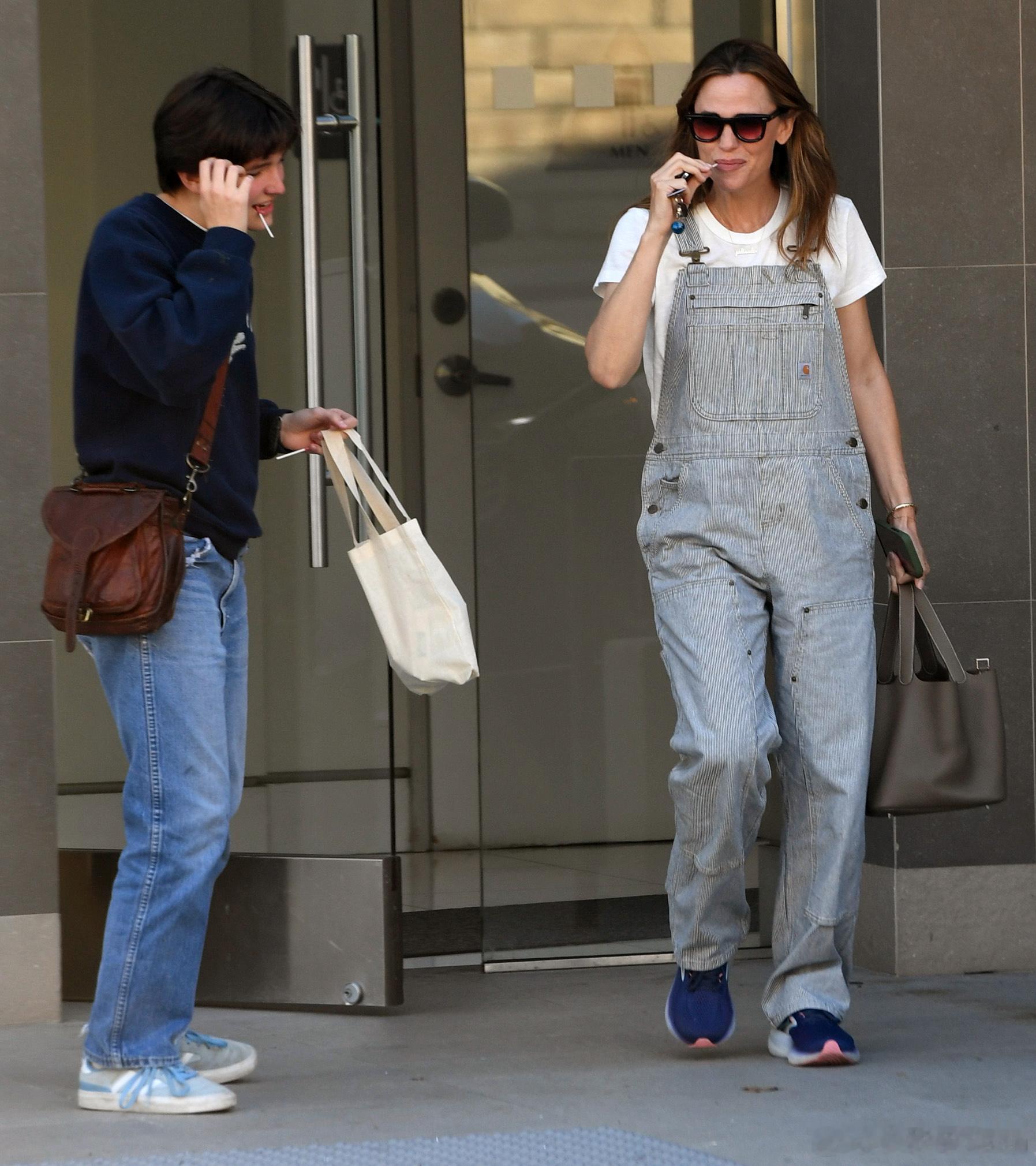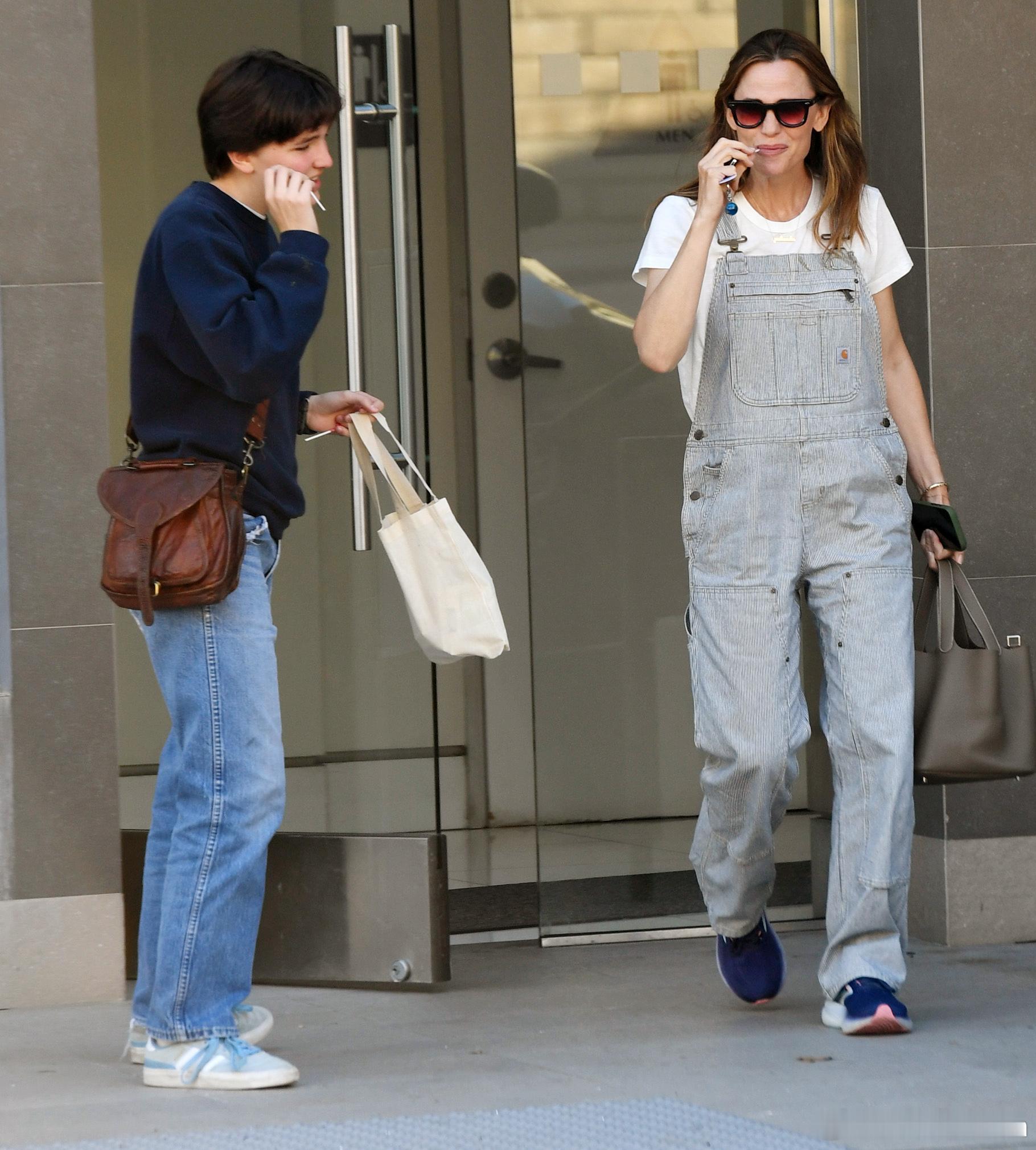 Jennifer garner詹妮弗加纳在洛杉矶外出购物,还有老二Fin陪同,两人还吃起了棒棒糖,也很是可爱了 ​​​