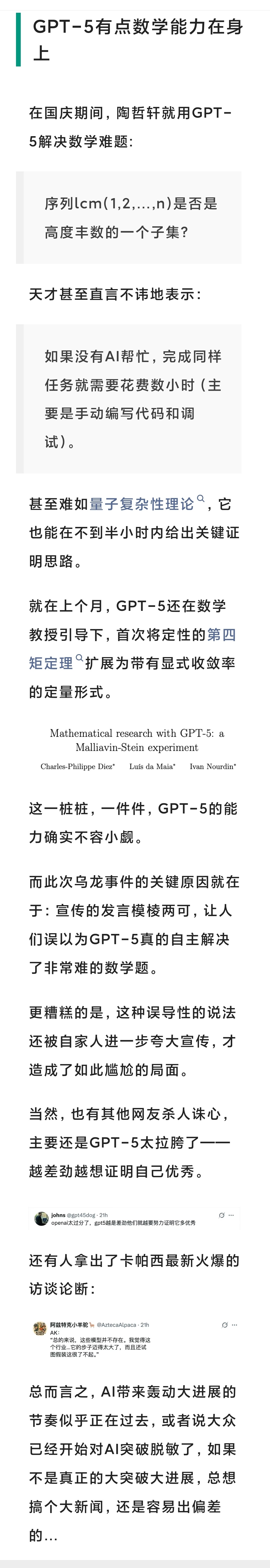 以为AI证明了一些厄尔多斯问题,结果是找到了人类发表的证明。这是高级搜索工具,确实有进步,能沾边地理解问题。