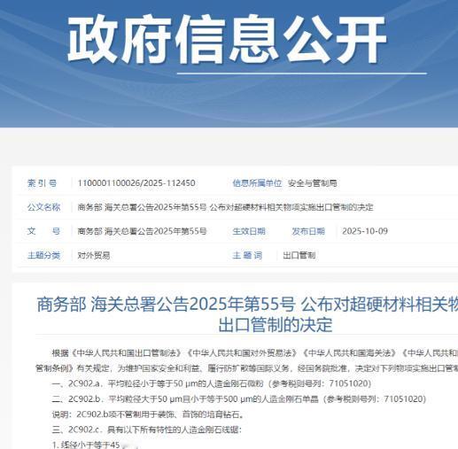 中国再出重拳,比稀土还致命,万斯劝中国要冷静。我国商务部已经决定,从下月8日开始,国产的人造钻石粒径≤50μm,必须要经过审批才能出口。 一种看起来像白糖一样细腻的粉末,正在让美国焦急万分,10月12日,美国副总统万斯罕见地放低姿态,公开表示希望能与中国“理性谈判”,还劝中方“保持冷静”。 几个月前,在安全会议上,他的态度还完全不同,让他转变的原因,不是政治压力,而是中国手里的关键材料——人造金刚石微粉。 这种粉末不是普通工业品,而是高端制造的核心材料,它的硬度与天然钻石几乎一致,是芯片、精密光学、航空材料等行业的关键支撑。 芯片制造过程中,硅片要被磨到极薄的厚度才能进入后续工艺,而每一片晶圆都需要经过反复抛光。 抛光工具上使用的,就是这种20到30微米的人造金刚石粉,根据行业数据,每处理一万片12英寸晶圆,就要消耗约50公斤高纯度金刚石粉。 如果粉末纯度或颗粒精度稍有问题,后果极其严重,台积电在亚利桑那工厂曾因此遭受巨大损失,因为切割刀所用的金刚石粉性能不稳定,导致300片3纳米晶圆直接报废,损失超过两千万美元。 金刚石微粉的用途不仅限于研磨,ASML光刻机内部的关键反射镜和高功率激光系统,都离不开它,反射镜需要被打磨到极高的平整度,任何微小误差都会影响光线精度。 而激光系统运行时温度极高,只有金刚石材料能同时满足高导热和高透光要求,否则设备会因为过热而停机。 中国在这一领域的领先地位,是几十年积累的结果,上世纪90年代,全球工业金刚石市场被美国和南非垄断。 中国科研团队开始自主攻关“六面顶压机”技术,这种设备能在极端压力下合成金刚石。 经过长期研发,中国的第六代压机在控制精度和生产效率上全面超越国外,一台机器的产量是南非同类设备的2.3倍。 美国也尝试追赶,2022年,美国能源部投入1.2亿美元,试图通过“无压合成”路线绕过中国技术。 但两年过去,他们只得到少量8微米晶体,距离工业化还差得很远,相比之下,中国工厂早已能够以更低成本稳定量产纯度高达99.999%的50微米钻石粉。 技术之外,中国还建立了完整的产业体系,以河南为核心,从石墨提纯、压机制造到微粉研磨,中国形成了全链条产业集群。 美国地质调查局数据显示,中国生产的工业金刚石占全球总量的95%,微粉产品占90%以上,且是唯一能批量供应芯片级高纯度产品的国家,这样的优势,任何国家想追上至少需要十年。 这让美国半导体行业协会(SIA)拉响了警报,在提交给国会的报告中,他们指出,金刚石微粉对芯片产业的风险“比稀土更严重”。 如果供应中断,美国至少五家芯片厂将在三个月内停产,重建供应链预计需要五年,成本还将增加三倍。 而中国并没有选择全面禁运,而是采取更精准的管理方式,新出台的出口管制系统将审批流程表面上从20天缩短到5天,但同时增加了严格的审核环节,进口方必须提交最终用户声明,并由其政府出具“无转用保证函”。 这种策略的效果立竿见影,美国一家医疗设备公司申请材料,用于非军工用途,仅72小时就获批;另一家试图转作军工用途的企业,申请直接被拒。 ASML和蔡司等大型设备制造商虽然获得许可,但额度仅为去年的62%,并附加“只修不造”的条款——材料只能用于维修已售设备,不得生产新光刻机,这一限制,直接影响了ASML的扩产计划。 中国从过去被动应对美国技术封锁,到如今掌握关键原料的主动权,中国正在通过“合规、可控”的供应体系,重新定义全球高端制造的规则。