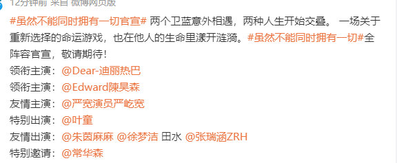 虽然不能同时拥有一切常华森特别邀请 常华森一部开播一部官宣