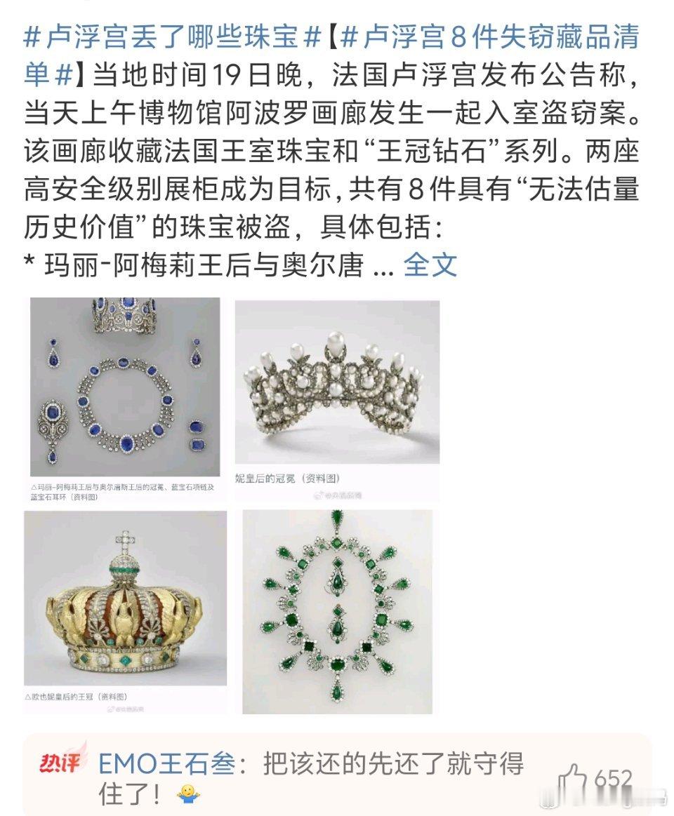卢浮宫8件失窃藏品清单不敢想象2025年还能有藏品被盗事件问题人家也没上什么高科