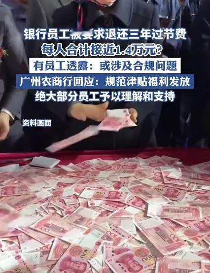 银行3年前发给员工的过节费,要求员工全吐出来,广州农商行的吃相有点难看。银行的奇葩事年年有,要求返还绩效奖金不奇怪,这是上头要求的。可都给员工发出去的过节费奖励,还能收回来,还一收就是近三年,这还是头一次听说如此离谱。 这几天广州农商行被骂惨了,过节费历来就是银行福利的一部分,这几年效益不好少是少了点,可也没有拉屎往回坐的道理。广州农商行就开了个很不好的头,可能是为了怕留下口实,这事从一开始就是行长口头往下传的,要求员工退回从2022年到2024年的过节费,平均一个人退回1.4万。这可不是一个小数目,广州农商行“贴心”的给员工想好了方案,可以分多次退回,第一次只退2500块,剩下的每月从工资里扣。广州农商行员工看到这个消息,瞬间感觉一万头羊驼从身上踩过去。 眼见事情闹的有点大,广州农商行霸气对外回应称,银行做法符合相关规定,员工表示理解和支持。银行都替你说话了,谁反对,谁支持?哪个敢不理解,敢不支持?除非不想吃这碗饭了。 不过细想之下,广州农商行这么做倒可以理解,因为准确来说,广州农商行不是参照银行的做法,而是国企的要求。因为广州农商行是一家妥妥的国企,十大股东包括广州金控、广州地铁、广州市建等等,背后实控人都是广州市府,国企持股比例超过75%。联想到这两年地方经济的窘境,老大都在过紧日子,上头八项规定又高悬头顶,广州农商行前几年发钱也确实有点超标,如今老大要求银行员工退回过节费,跟着自己一块过一过紧日子,这要求不过分。