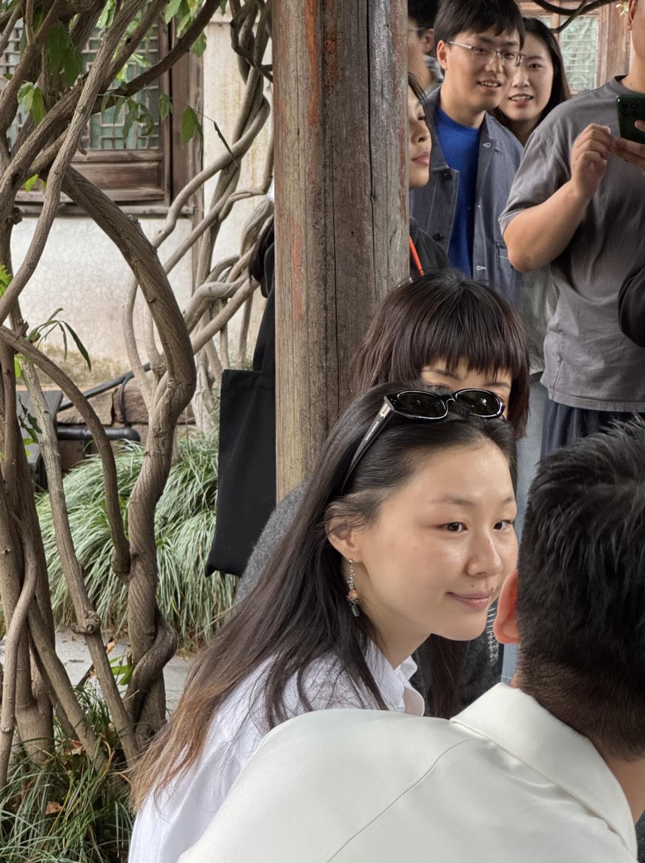 10月19日,有位网友在乌镇偶遇金靖,她坐在那里聊天的画面。 金靖参加活动也没