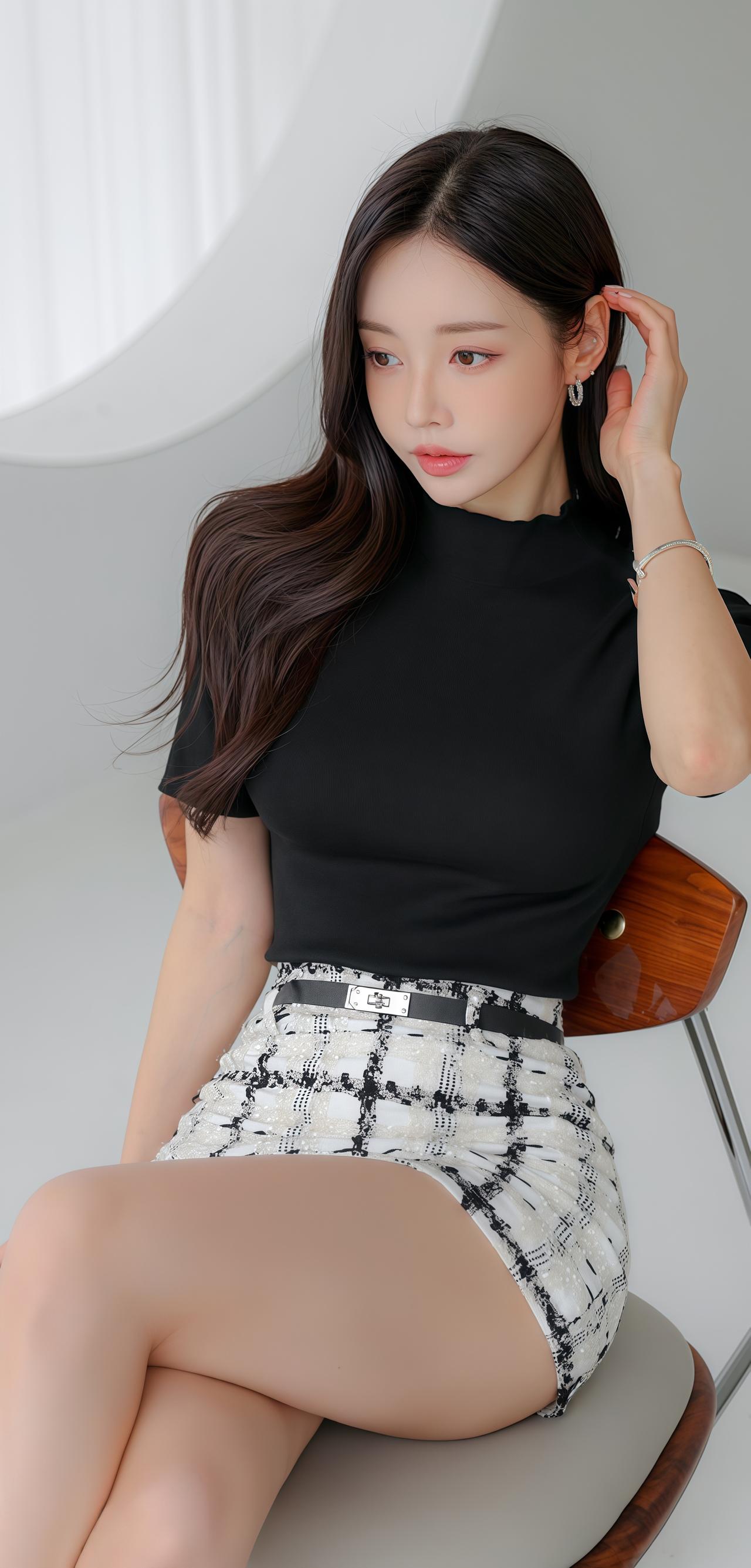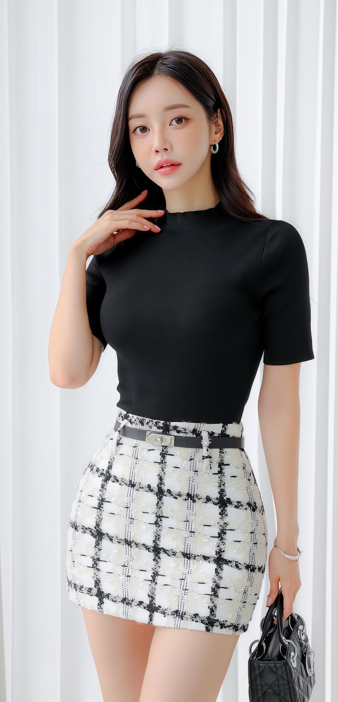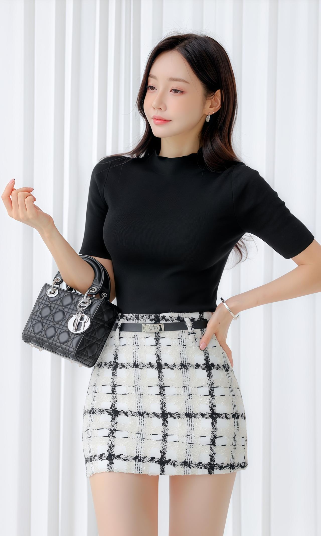 孙允珠优雅气质穿搭,白色上衣搭配黑色短裙,简约时尚!
