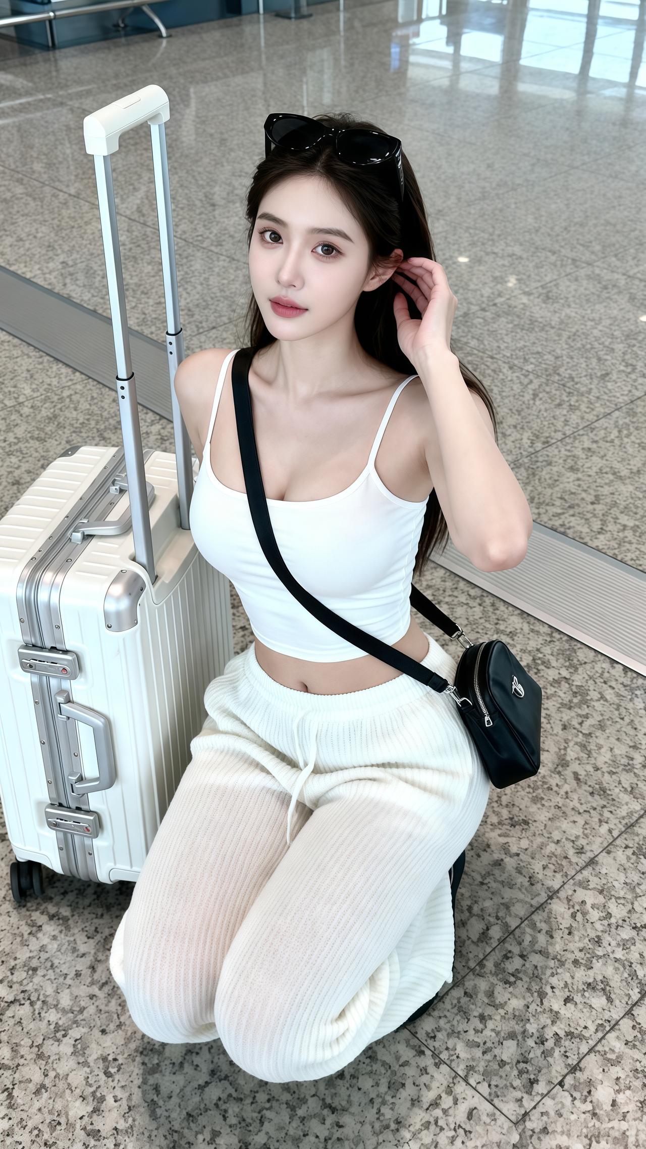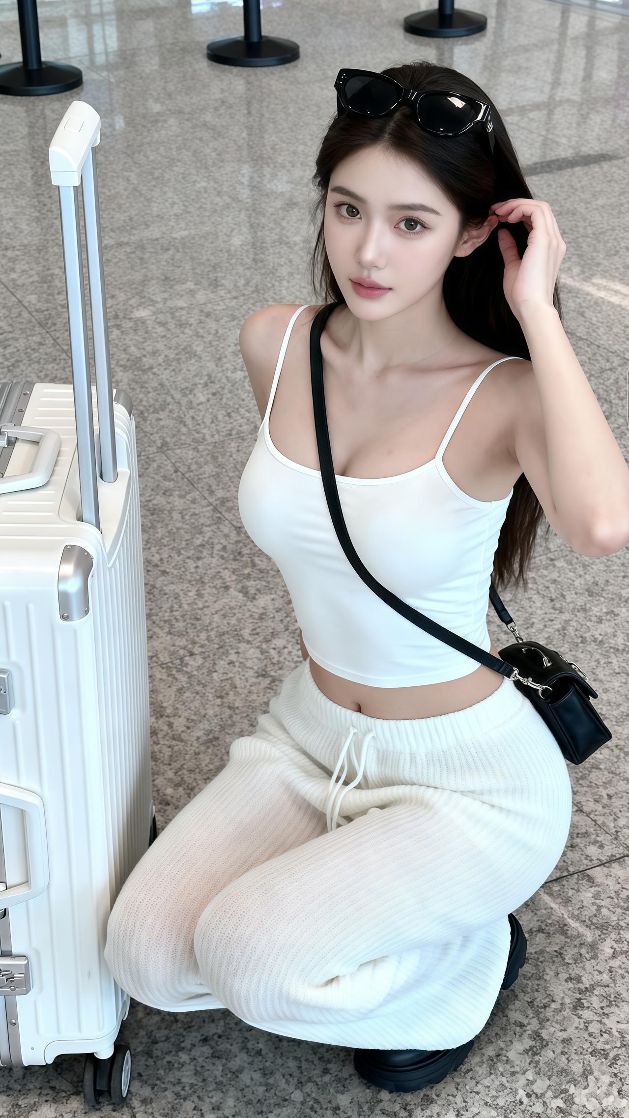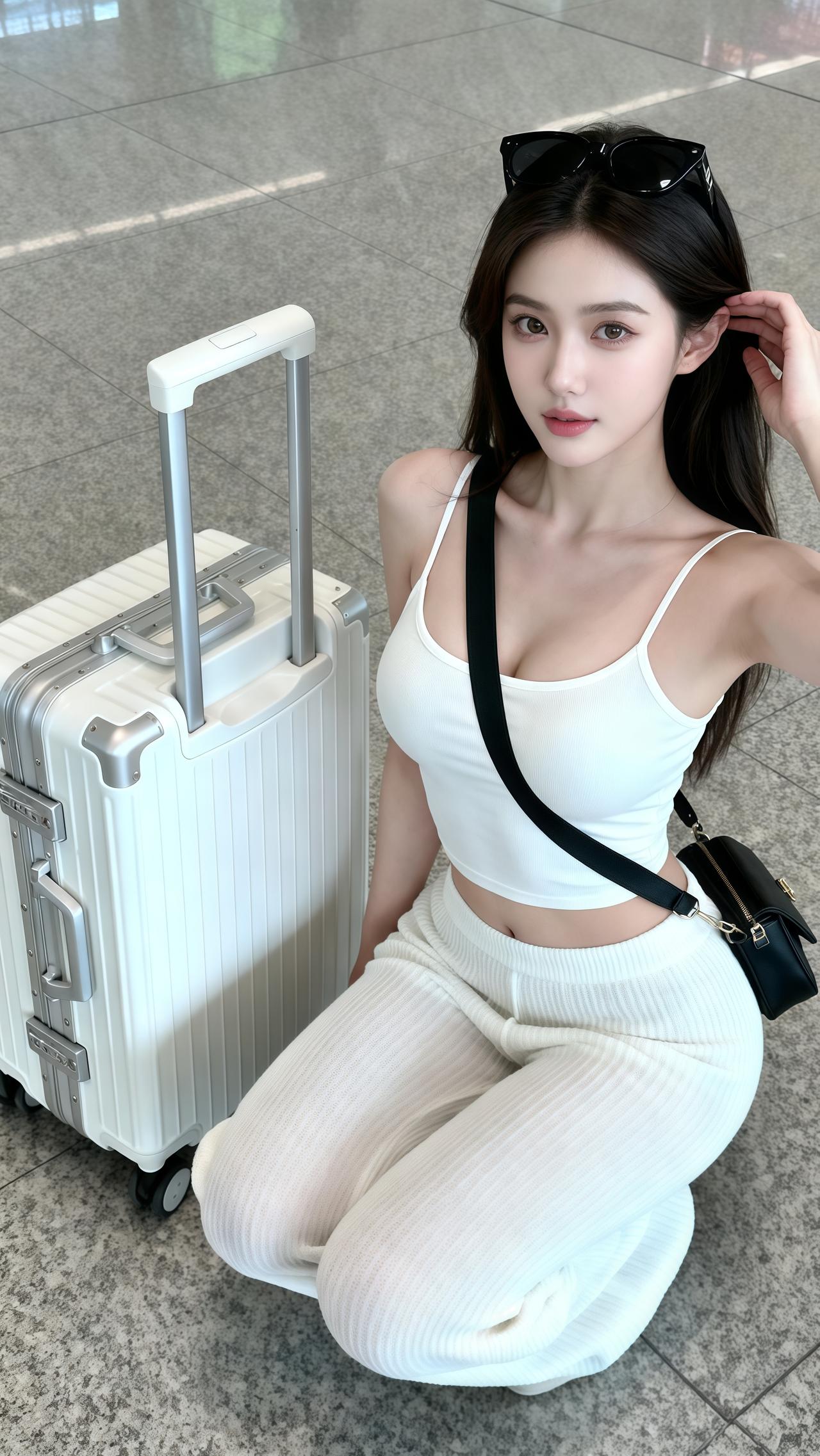 白色运动套装搭配墨镜,简约时尚,轻松出行!