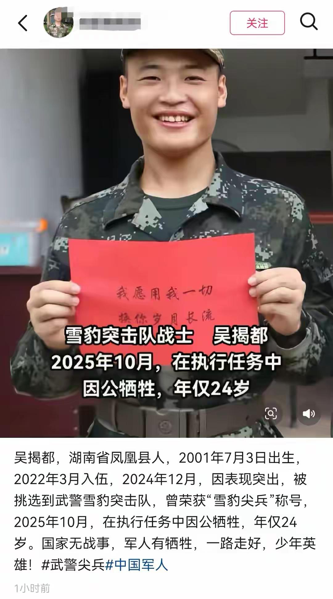 湖南凤凰县icon,雪豹突击队“兵王”牺牲现场!一个24岁小伙,太可惜,刚入选雪豹尖兵就出意外,训练场突发险情,队友想拉都来不及,只能眼睁睁看他倒下!部队这下损失大了,10月15日上午,吴揭都正在参加高空索降课目,挂钩不知怎么的突然脱扣,整个人从十多米直坠,后脑勺磕在水泥棱角,当场没救回来。 好在,任务区没平民,也没牵连战友,大多是擦伤、惊吓,目前,支队没公布细节,到底是装备故障,还是操作失误? 老话说,“练兵千日,用兵一时”,现在大家最希望的,就是上级能好好查查这件事,让雪豹吸取教训,以后多检查装备器材,别再让好小伙掉命的事发生,毕竟尖刀也是娘生爹养,谁也经不起这样的噩耗,更不想因为一时疏忽送命。