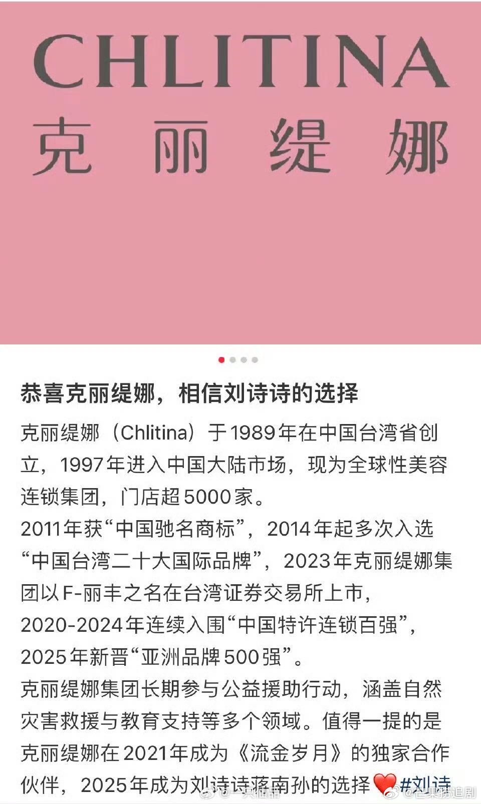 继伟星后,刘诗诗再拿一家500强企业解锁全球代言人身份,一姐从来都是品质上的先行者。剧本是,代言也是。伟大无须多言。 ​​​