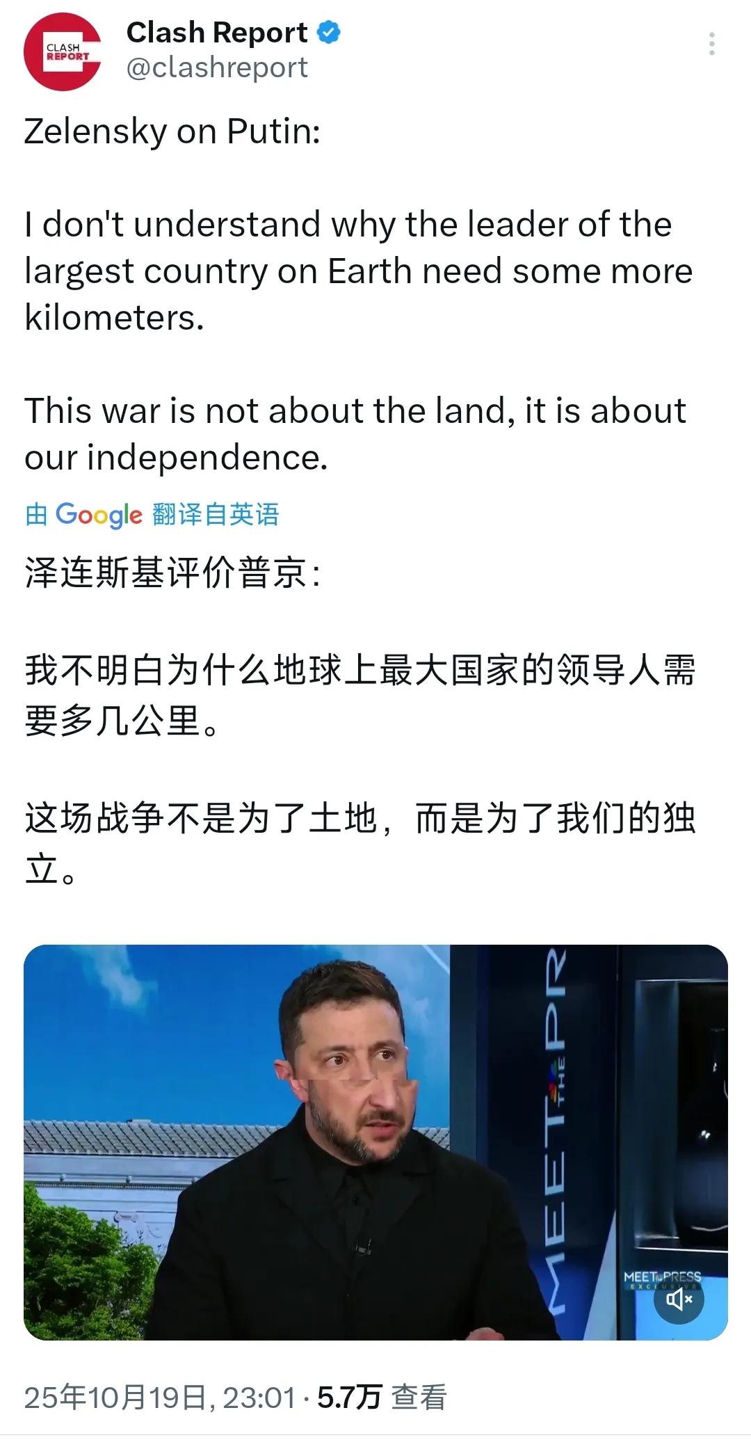突发新闻:普京总统称乌克兰想通过西方的帮助将我们拖入第三次世界大战。 泽连斯基称,我不明白为什么地球上最大国家的领导人需要多几公里。这场战争不是为了土地,而是为了我们的独立。 这是特朗普与普京通话、与泽连斯基会谈的部分内容,美国多家媒体已经作了简要报道,《金融时报》昨天的报道更为详细。现在俄乌双方就实际控制线停火谈判基本达成一致。俄方的要求比之前略有让步,同意交出哈尔科夫、苏梅以及第聂伯罗彼得罗夫斯州所占领土,与顿涅茨克州未占领土等比例交换;乌方在与美方会谈中则提出1公里顿涅茨克领土换2公里其他领土,泽连斯基需要这么做,以便将此包装成谈判的一次胜利。