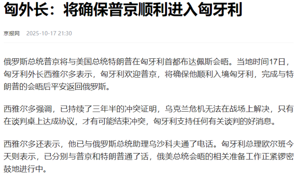 德国外交部要求匈牙利,执行ICC逮捕普京的裁决!   10月17日,德国外交部通过发言人明说,《罗马规约》对匈牙利还管用,这话里的意思很直白——就是让匈牙利配合国际刑事法院(ICC)那道逮捕普京的裁决。   然而,匈牙利对德国这要求压根没上心,半点要执行的意思都没有。倒不是匈牙利故意抗法,而是它有自己的多重顾虑——作为欧盟成员国,匈牙利跟美国在能源合作、安全防务这些事儿上绑得挺紧,偏偏最近特朗普和普京要见面的事儿已经在筹备了。   更关键的是,欧盟也已明确表示现行制裁并未限制普京访问匈牙利。这节骨眼上,匈牙利要是真按ICC裁决来,不仅和欧盟表态相悖,还会平白成为美俄互动的“拦路虎”?   之前匈牙利总理府就说过类似的话,大意是“国际司法裁决也得考虑外交实际和盟友关系”,这次的态度明显就是照着这话来的。   更何况匈牙利和俄罗斯在能源供应上还有不少合作,真把关系闹僵了对自己也没好处,既然欧盟制裁本身都没拦着普京访问,额外执行ICC裁决更显得没必要。   不光匈牙利,整个欧盟的态度也透着股微妙。欧盟官方平时总说要维护国际法治,按道理该支持ICC的裁决,可面对美俄这两个大国的互动,大多数成员国都选择了闭嘴,没形成统一的执行意见。   这种集体“不吭声”,说白了就是在权衡利益——能源安全上,欧盟不少国家还得依赖外部供应;全球治理的很多事儿,也得跟美国商量着来,同时又不想把俄罗斯彻底得罪死。   而德国在这场博弈里的处境更显复杂,它之所以高调喊出这话,也是有自己的小算盘。   这几年欧盟对俄罗斯的制裁效果一直不怎么样,要是连ICC裁决这种“拿得出手的法理依据”都没法在欧盟内部达成一致执行的想法,那整个对俄制裁体系就显得更松散了。   作为欧盟的核心国家,德国一方面想保住自己在对俄政策上“政治正确”的形象,另一方面又怕把本来就有分歧的欧盟逼得更分裂,所以才选了这种“光表态施压”的方式,既显得自己坚守国际司法原则,又不会真的把事情闹到不可收拾。   但这种“嘴上强硬”的姿态,根本藏不住现实里的尴尬。匈牙利直接明说要“按本国法律和外交政策实际情况评估”,这话翻译过来就是“我不答应”。欧盟内部也没拿出任何具体的执行方案,所谓的“法律义务”到最后还是得给地缘政治利益让路。   其实这场看似围绕法律原则的争执,说到底还是各方在算自己的利益账。德国喊这一嗓子,更像是为了给对俄制裁撑撑“体面”,免得让那些本来就没多大效果的制裁措施,最后真成了国际社会的笑柄。   在美俄博弈的大背景下,这样的“隔空喊话”既改变不了现实,也推动不了问题解决,恐怕到最后也只是国际政治舞台上一段没结果的小插曲而已。