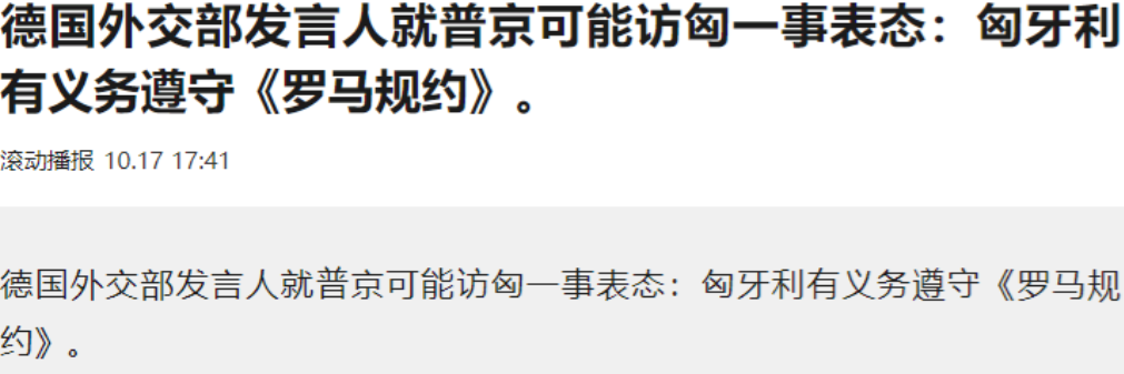 德国外交部要求匈牙利,执行ICC逮捕普京的裁决!   10月17日,德国外交部通