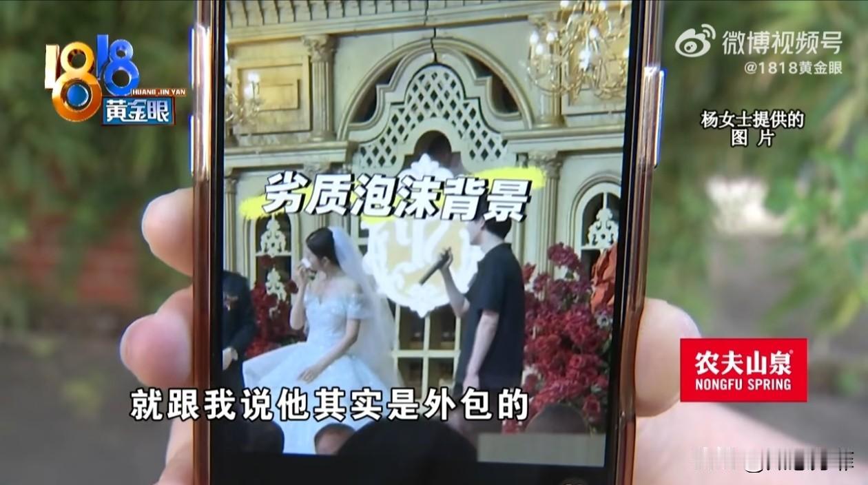 女子找了丈夫的高中同学操办婚礼,对方报价16万,说是友情价,起码做出20多万的效果,在村里能让别人讲上三天的那种,结果最后女子到现场一看,直接两眼一黑。女子:非常粗制滥造。 浙江,女子和丈夫筹备婚礼时犯了难,刚好丈夫的高中同学主动找上门,说自己深耕婚庆行业多年,能帮他们操办。 女子看了对方给出的效果图,很满意,加上又是老同学,夫妻俩比较信任,没没签合同就转了10万5的预付款,把婚礼全交给他负责。 直到婚礼前一天彩排,女子走进场地瞬间就懵了,承诺的精致布置全都没有,没有鲜花,假花还沾着灰甚至褪色了。 迎宾区背景墙就是块简易喷绘KT板,没有相框,边缘还全是划痕。甜品台看着也很廉价,场地中间的小喷泉更是劣质品,水直接溅到了外面。 女子气不过,把现场视频发到了网上,后来有婚庆公司发消息告诉她,男子根本没有自己的团队,只是把这单以5万6的价格外包给了他们。 之后女子找到男子对峙,他先是狡辩,后来又发了份14万的清单,同意补偿1万,还表示价格是你情我愿的。 女子坚决不付剩下的5万5尾款,要求退差价和道歉,但男子表示已经找了律师来处理这件事。 男子利用夫妻俩对老同学身份的信任,净赚10万差价,把人情当坑人的工具,吃相太难看了,毫无底线。 也心疼这对夫妻,本来满心期待的婚礼,现场却粗制滥造,亲友议论纷纷,好好的喜事成了闹心事。 再熟的关系,办大事也要签合同,必须把责任写清楚,不能光听口头承诺,提前付全款更要慎重。