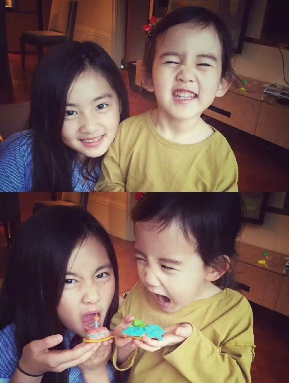 二女儿五官精致,脸型流畅、四肢修长,长大后不会比多多差的!黄磊家的两个女儿都好看