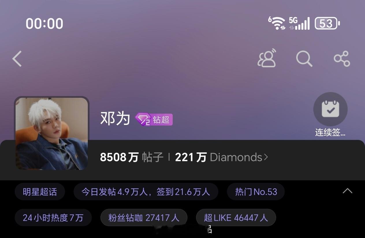 邓为昨日超话发帖4.9万+,超like4.6万+
