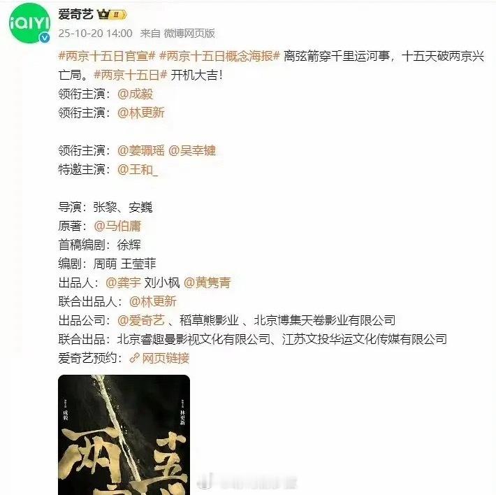 马伯庸经典作品改编的双男主剧《两京十五日》,成毅、林更新的新鲜搭档