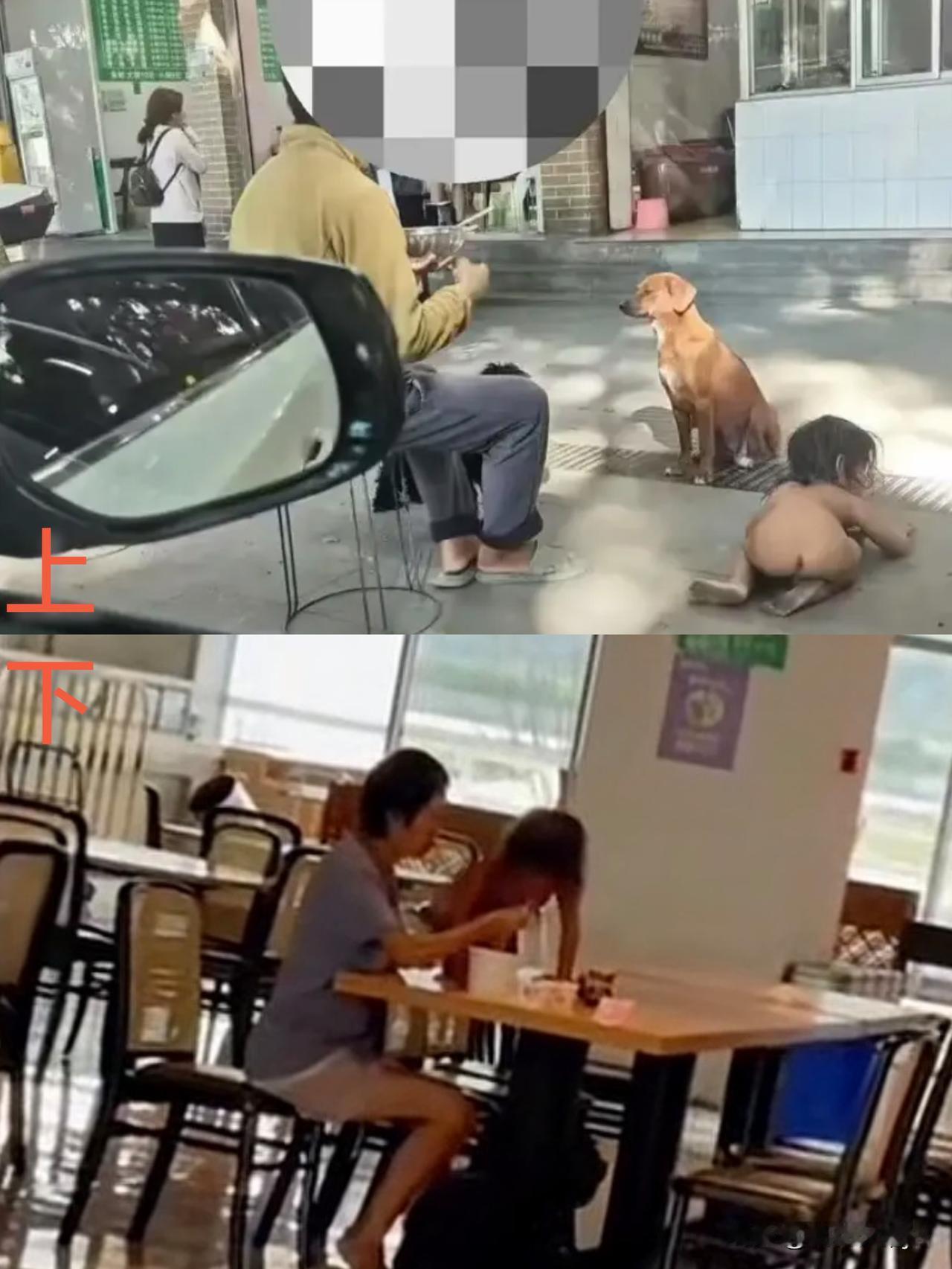 你看懂了吗? (图上)饭店老 板给“野人小孩”端饭来,男子示意老 板放到地上,不准小孩去接,, 让他像狗一样趴着舔食。 (图下)女子在饭桌前用手喂给“野人小孩”吃。 “世上还是妈妈好…” 让人泪目。 打死我都不信! 当我看到这张照片时就明白了…