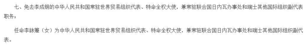 李成钢得到进一步重用!我们国家对李成钢的职务进行调整! 10月20日,根据国内媒体报道,我们国家对李成钢的职务进行调整。我们国家决定免去李成钢的中华人民共和国常驻世界贸易组织代表、特命全权大使,兼常驻联合国日内瓦办事处和瑞士其他国际组织副代表职务。 别以为这是 “卸担子”,说白了,这是国家把最懂国际经贸规则的人,从 “分心的杂事” 里拉出来,专门去对付眼下最棘手的几个 “硬茬子”。 之前在日内瓦,他要应付 164 个国家的诉求,还要管联合国的一堆事,再能干也没法集中火力。现在好了,一身轻,专啃那些卡咱们脖子的难题。 先看锂矿 — 这可是新能源的命根子,现在全球都在抢锂,美欧今年凑了个 “关键矿产联盟”,小动作不断:一边拉着加拿大、澳大利亚囤锂矿,一边跑去找阿根廷、玻利维亚 “画饼”。 要知道,这俩国家占了全球 40% 的锂储量,美欧就想让它们别跟咱们深合作,甚至放话 “给补贴”,条件是锂矿优先供美国车企。 咱们也没闲着,9 月刚跟阿根廷签了合作备忘录,不光帮它们建锂加工厂房,还想打通 “锂矿 - 电池 - 整车” 的全链条。可美欧能善罢甘休吗?肯定会搞鬼 — 比如游说阿根廷给咱们的企业加 “环保审查”,或者搞 “出口配额”,不让锂矿顺利运回来。 这时候李成钢就顶用了,他在日内瓦的时候,就帮发展中国家争过矿产权益,懂 WTO 的规矩。现在他能提前跟阿根廷把话讲死,咱们投的厂,不能随便找茬; 还能在国际上戳穿美欧的猫腻 —按规则,这种 “带条件的补贴” 本就不公平,他一开口,美欧想抢锂矿的招就不好使了,咱们新能源产业链的 “源头” 就能守住。 再看 CPTPP 谈判 — 卡在 “数据” 上了,咱们 2021 年就申请加入 CPTPP,现在最头疼的是 “数据跨境流动”。CPTPP 要求 “数据能自由传”,可咱们有数据安全法啊,像车企的自动驾驶数据、电商的用户隐私数据,出境得审核。美加澳就拿这个说事,说咱们 “不符合规则”。 但李成钢有办法!他之前在日内瓦谈数字贸易时,就琢磨出 “分级管” 的招,普通消费数据好说,关键数据必须审,当时还说服了不少发展中国家。 现在他回来牵头谈判,就能把这招落地:一边跟 CPTPP 成员掰扯,咱们审核数据是为了保护用户安全,不是搞壁垒 — 比如拿新能源汽车举例,数据随便传,万一被黑客利用,行车安全都没保障; 还有欧盟的农产品新规 — 专卡咱们出口,今年 7 月,欧盟搞了个 “可持续发展尽职调查法案”,针对咱们出口的大豆、棉花、茶叶,要求必须追溯到每一块种植地,还得证明没用到 “非法劳工”、没破坏环境,不然就不让进。 这看着是讲环保、人权,其实就是加门槛!比如咱们的大豆,大多从黑龙江、内蒙古进口加工,再出口到欧盟,现在要追溯到每一户农户,成本一下涨了 15%;棉花更别提了,美方之前造谣新疆棉,欧盟现在借着这个法案故意提高审核标准。 最后看东盟跨境电商 — 别让规则卡了生意,东盟现在是咱们最大的贸易伙伴,去年对东盟跨境电商出口超 3000 亿元,Shein、Temu 在东南亚卖得火得很。可今年东盟要搞 “跨境电商零售进口统一标准”,清关时间、退换货规则、税费计算,都要按它们的来。 这里面有俩坑:一是东盟内部标准乱,泰国要 3 天清关,马来西亚要 7 天,统一后咱们的电商平台得改系统;二是美方在背后撺掇,想让东盟按美国的标准收 “数字服务税”,专门针对咱们的电商。 李成钢回来就能搞定这些事!他能跟东盟谈,建议统一标准别折腾企业 — 比如清关时间取中间值 5 天,别让大家来回改;还能帮电商平台争取 6 个月的过渡期,别一下断了生意。 现在再看这次职务调整,就特别清楚了,不是给李成钢减任务,是让他从 “多边协调员” 变成 “破局能手”。不用再隔着时差应付日内瓦的杂事,能专心盯锂矿、数据、农产品、跨境电商这些硬仗,用他懂规则、会谈判的本事,帮咱们在全球经贸圈里守住阵地。