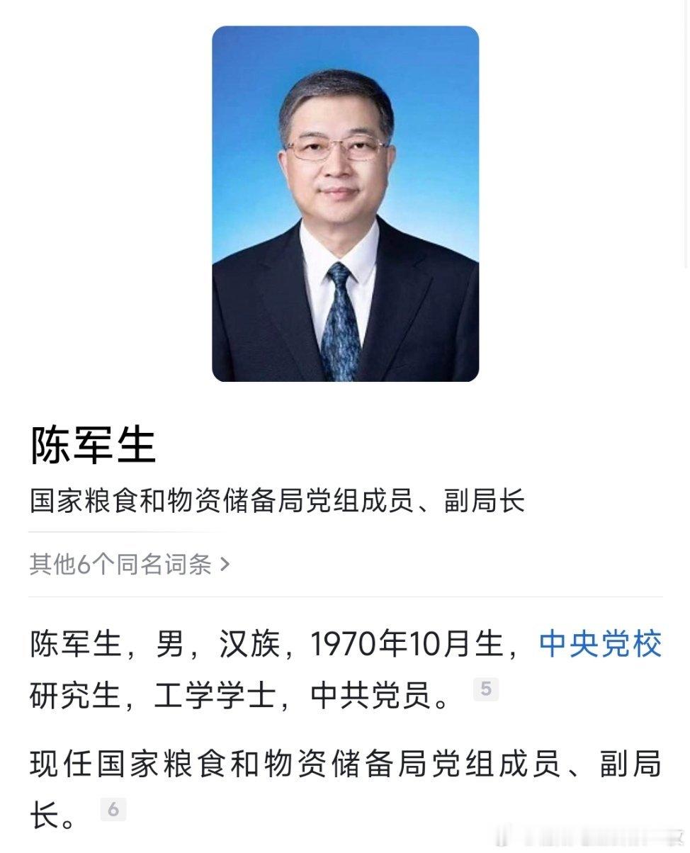 陈军生任国家粮食和物资储备局副局长。热点现场