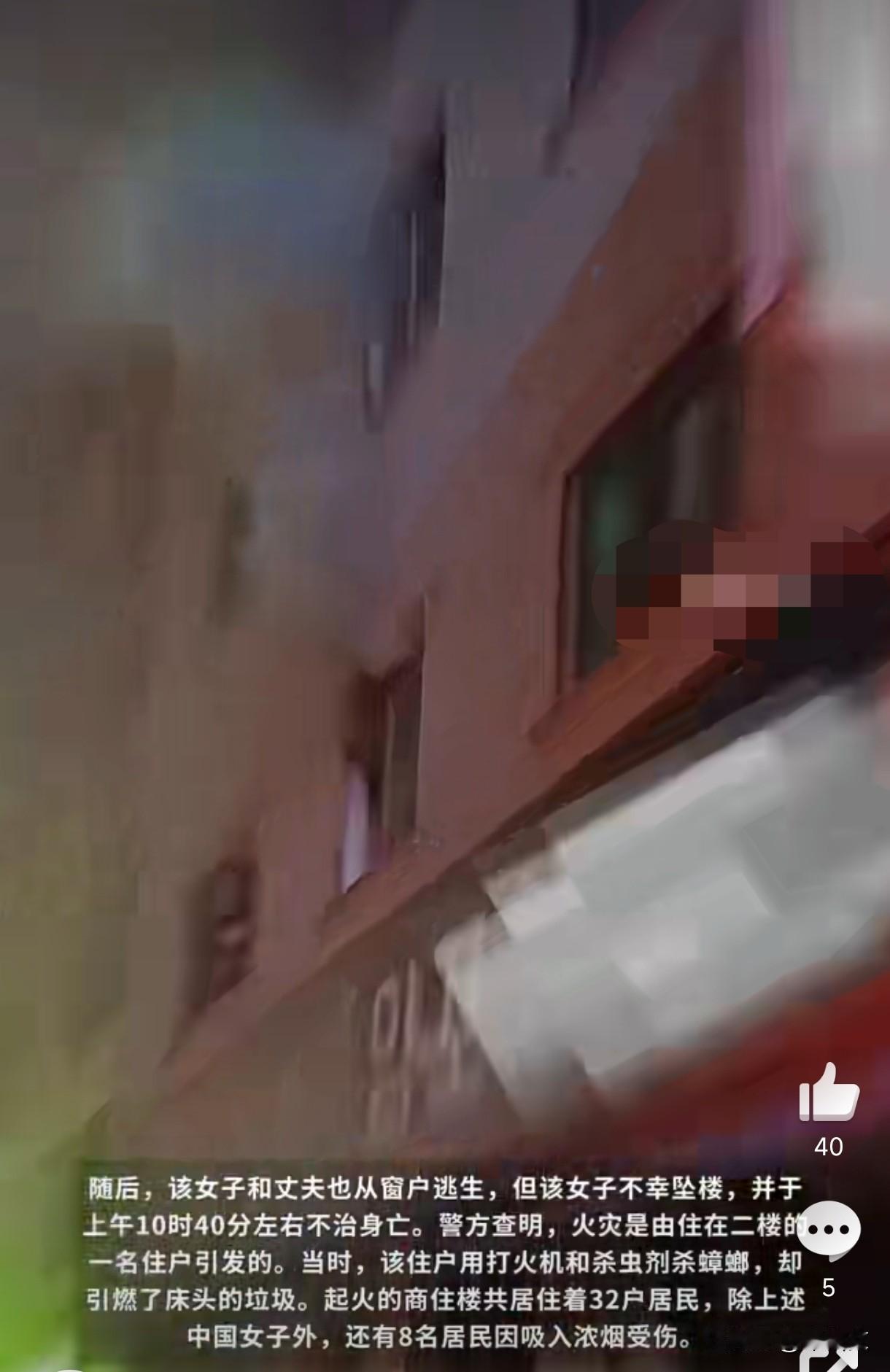揪心!韩国火灾里的中国妈妈,把娃递出去自己没回来,原因太离谱 韩国乌山这事儿看得人眼泪直打转,凌晨大火里,中国妈妈先把俩月大的娃递到安全地方,自己却没挺过来,这背后的原因能气死人。 10月20号凌晨五点多,那栋五层商住楼突然冒起浓烟,火舌顺着楼道往上窜,住在五楼的30多岁中国女子和丈夫,抱着襁褓里的孩子慌了神。 两口子赶紧冲到窗边呼救,万幸的是,他们住的楼和隔壁楼离得特近,窗户间距不到一米,隔壁邻居听见喊声立马开窗,稳稳接住了孩子。 孩子安全了,夫妻俩也想顺着窗户挪过去逃生,可不知咋的,女子突然脚下一滑坠了楼,送到医院抢救到上午十点多,还是没救回来,就差一步啊。 这火压根不是意外,警方一查,源头在二楼住户身上。这人想杀蟑螂,居然拿打火机凑着杀虫剂喷,火星一下就引燃了床头的垃圾,火就这么烧起来了。 杀虫剂这玩意儿可太危险了,里面全是烷类、酯类这些易燃成分,遇明火跟汽油似的,喷的时候遇火星直接爆燃,之前国内就有喷杀虫剂炸死人的先例。 就因为这离谱操作,整栋楼32户人家遭了殃,除了这位妈妈没了,还有8个人被浓烟呛伤,好好的凌晨睡得正香,差点把命搭进去。 最让人揪心的就是这位妈妈,生死关头先顾着孩子,把生的希望给了娃,自己却没抓住。网友看了都心疼,说这就是母爱本能,拼了命也要护着孩子。 可反过来想,这悲剧本可以避免。要是二楼住户有点常识,知道杀虫剂不能碰明火,要是商住楼的消防设施再靠谱点,说不定就不会出这事儿。 之前国内也有类似教训,哈尔滨有家酒店,就因为常闭式防火门没关,浓烟一下窜满整栋楼,20人没了性命。火灾里的每一个小疏忽,都可能酿成大祸。 现在孩子是安全了,可再也见不到妈妈了,一想到这儿就心里发堵。这事儿也给所有人敲了警钟,家里的这些危险品,使用时真得绷紧神经。 杀虫剂、花露水这些带酒精或易燃成分的东西,必须离火源远远的,喷完也得等味儿散了再靠近明火,别觉得“就一下没事”,危险就藏在侥幸里。 高楼着火也千万别瞎爬窗户,浓烟里视线差,手脚发软很容易失足,正确的做法是关紧房门堵缝,等消防员来救,盲目逃生反而更危险。 这起悲剧里,母爱让人泪目,可火灾原因又让人窝火。你们家里用这些易燃日用品时,都会特别注意火源吗?评论区唠唠,别让小疏忽酿成大遗憾!