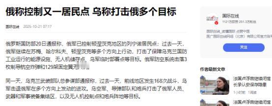 俄罗斯媒体报道! 10月20日晚报道,俄罗斯国防部通稿指出,俄罗斯中部集团军部队经积极进攻行动,成功控制顿涅茨克人民共和国的丘尼什克居民点,取得战场新进展。 丘尼什克位于顿涅茨克西部,是连接红军城(乌称波克罗夫斯克)和康斯坦丁诺夫卡的交通要道。 红军城是乌军在顿涅茨克地区的后勤枢纽,有多条铁路和公路经过,战略地位极其重要。 控制丘尼什克,俄军可以切断乌军从红军城向康斯坦丁诺夫卡的补给线,对乌军形成包围之势。 俄军中部集团军在此次行动中采用了“千刀万剐”战术,即派遣四到六人的小队,利用地形渗透到乌军防线后方,进行骚扰和打击。 这种战术让乌军难以集中兵力进行防御,也难以调动炮火进行支援。在俄军的持续进攻下,乌军防线逐渐被突破,最终丘尼什克被俄军控制。 此次胜利是俄军在顿涅茨克地区的又一重要进展。此前,俄军已经控制了新赫罗迪夫卡、涅韦尔斯克村等多个居民点,距离红军城越来越近。如果俄军能够继续推进,拿下红军城,那么乌军在顿涅茨克地区的防御将面临崩溃的危险。 乌军在顿涅茨克地区的处境日益艰难,由于美国暂停了对乌军事援助和情报共享,乌军的弹药和装备供应受到了严重影响。此外,俄军还加大了对乌军能源设施和交通基础设施的打击力度,进一步削弱了乌军的作战能力。 面对俄军的进攻,乌军总司令瑟尔斯基表示,乌军将继续坚守阵地,保卫国家的领土完整。他还呼吁西方盟友加大对乌克兰的支持力度,帮助乌克兰抵御俄罗斯的侵略。 目前,俄乌冲突已经进入了第四个年头,双方在顿涅茨克地区的争夺仍然十分激烈。俄军希望通过控制顿涅茨克地区,实现其“控制整个顿巴斯地区”的战略目标。而乌军则希望通过坚守阵地,争取更多的时间和支持,最终实现反攻。 这场战争给乌克兰人民带来了巨大的痛苦和损失。许多城市和村庄被摧毁,大量的人员伤亡和流离失所。国际社会呼吁双方尽快停火,通过和平谈判解决争端。 然而目前看来,和平谈判的前景并不乐观。俄罗斯总统普京表示,俄罗斯不会在顿涅茨克地区做出任何让步,除非乌克兰承认俄罗斯对该地区的主权。而乌克兰总统泽连斯基则表示,乌克兰不会放弃任何一寸领土,将继续战斗到底。 在这种情况下,俄乌冲突可能会继续持续下去,给双方和整个地区带来更多的灾难。国际社会应该加大斡旋力度,推动双方回到谈判桌前,寻求和平解决争端的途径。只能希望这场战争能够早日结束。 来源:国际在线 【俄称控制又一居民点 鸟称打击俄多个目标】