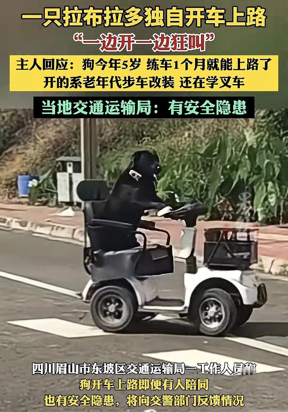 这样“疯”狂的狗主人难道不应该被管理吗?让自己的狗开电动车在公共马路上行驶,这样给公共道路带来的危险,如果发生危险,后果狗主人能承担的了吗?这样的行为,不就是为了自己的私欲,把危险平摊给路人吗?大家觉得呢?