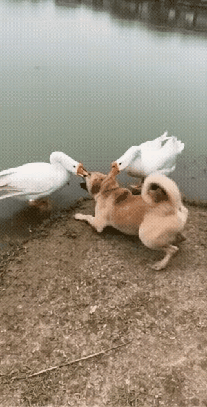 狗子颜面尽失!被两只大鹅围堵暴打,战术碾压毫无还手之力 笑不活了家人们!这只狗怕是这辈子都没想到,会被两只大鹅打得“狗面扫地”! 只见两只大鹅分工明确,一只正面伸着脖子啄狗脸,另一只绕后堵退路,一左一右把狗围在中间。狗子想躲却被追着啄,想反击又怕被夹攻,最后缩着身子趴在地上,连尾巴都不敢翘,半点脾气都没有。 这大鹅哪是打架啊,分明是懂战术!网友:别笑狗子了,换谁被两只“战术鹅”围堵,都得认怂!