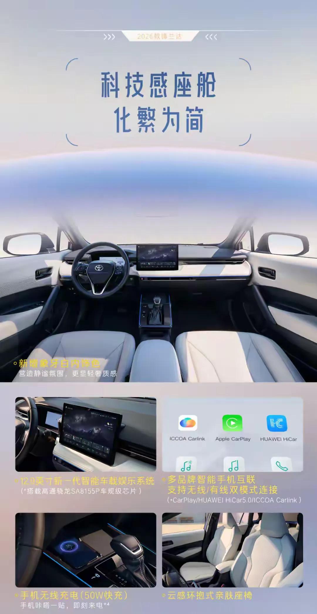 其实丰田汽车这么多年一直在做一件事,就是将省油进行到底, 在2025年9月23日广汽丰田全球车联合发布会上,推出2026款锋兰达、凯美瑞、汉兰达及赛那四款全球战略车型。此次升级是其坚持省油理念之外,迈向“智能化、高端化”重要转型。 2026款锋兰达外观采用“Keen Look”设计语言,大尺寸熏黑进气格栅配锐利大灯,溜背线条搭18英寸轮毂。 内饰升级软质包覆,有撞色缝线,配10.25英寸中控屏,搭载新一代智能座舱系统,支持语音交互等,升级TSS智行安全系统,有全速域ACC自适应巡航等功能。 入门焕新价10.28万元起,新增12.9英寸大屏、高通8155芯片等,实现全品牌手机互联。 2026款凯美瑞有豪华与运动双造型,豪华版用镀铬饰条格栅,运动版配蜂窝格栅与双边四出排气;内饰是“数字座舱”,12.3英寸仪表与14英寸中控屏组成双联屏。 搭载TSS 3.0系统,新增前方交叉碰撞预警增强版等功能。全球运动版造型下放,新推2.0HSE运动LITE版,焕新价15.88万元起,部分版本增配。 2026款汉兰达外观延续硬朗风格,加大进气格栅,配矩阵式大灯与贯穿式尾灯;内饰是“轻奢居家”风,大面积真皮包裹,有木纹面板与氛围灯。 搭载高通8155芯片,车机响应提升30%,支持后排娱乐屏互联与车载KTV。入门焕新价21.98万元起,标配15.6英寸大屏等十余项配置,新增透明底盘功能。 2026款赛那外观采用全新前脸设计,大尺寸格栅连犀利大灯,侧滑门电动感应,配19英寸轮毂;内饰是“移动豪华客厅”,二排航空级座椅,中间通道加宽。新增后方交叉碰撞制动增强版等功能。 入门焕新价26.98万元起,新增“四驱臻享版”,有雷克萨斯LM同款座椅等配置。 增配降价,智能化、科技化看齐国产新势力,在众多合资车企中,广汽丰田是率先推进产品现地化,智电化的企业,在大厂品质的基础上,不断向新向上,能在竞争激烈的市场中长期保持强势地位就不足为奇了。
