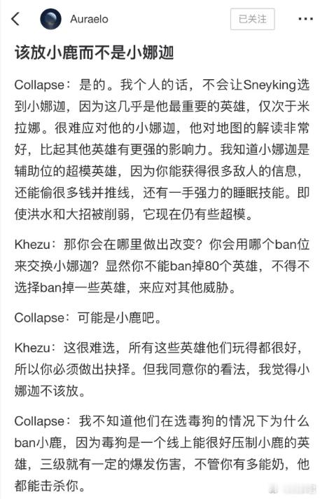 崩溃哥认为XG在决赛第五局应该放小鹿Ban小那家,因为毒狗打小鹿很好打dota2