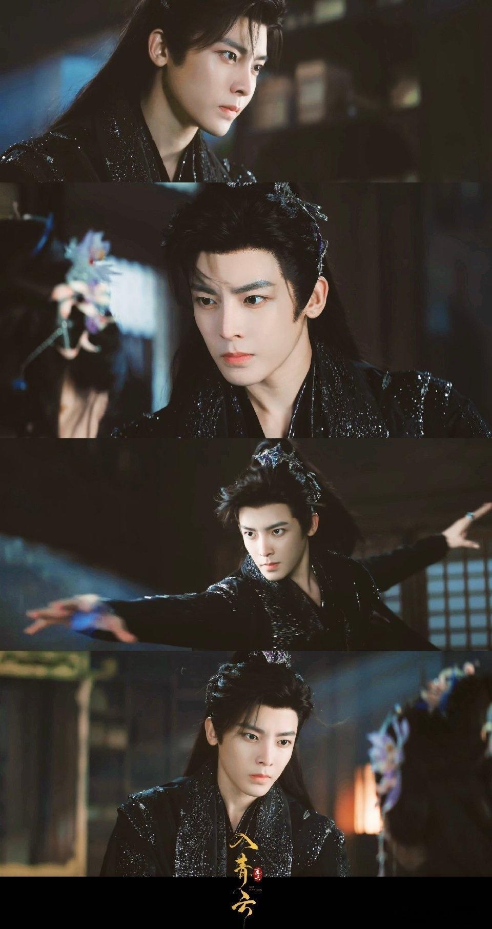 纪伯宰造型 黑色与暗红色的搭配,流畅肩线的设计和凌厉的V型领口,展现了纪伯宰的冷酷与魅惑气质。