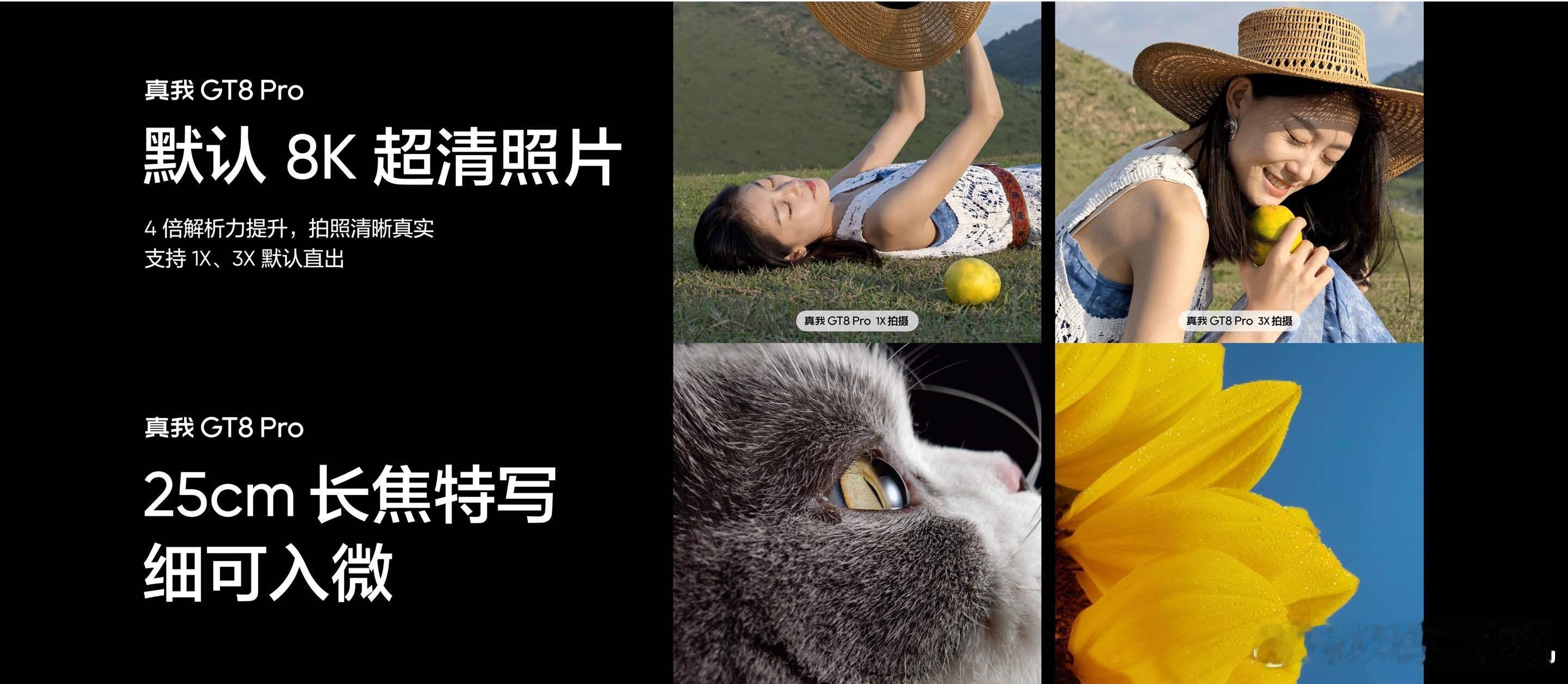 真我GT8Pro 搭载2亿超光影潜望长焦,是真我有史以来最强的长焦越级,支持3×光学变焦、6×&12×无损变焦,远近皆可拍